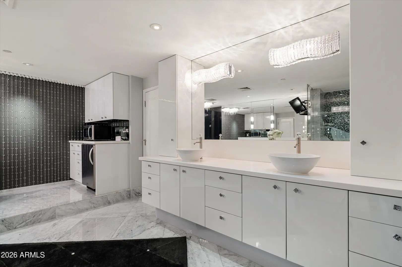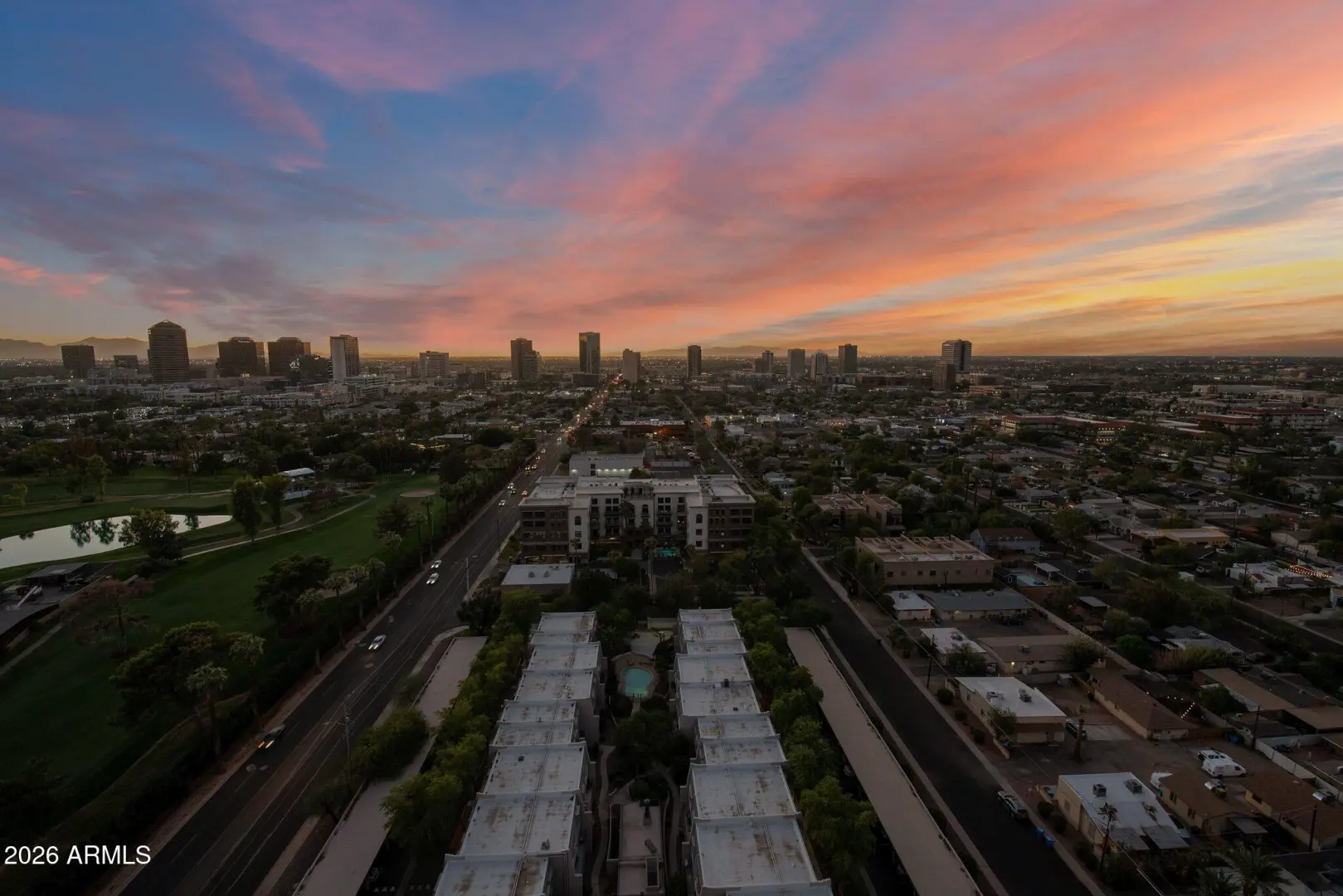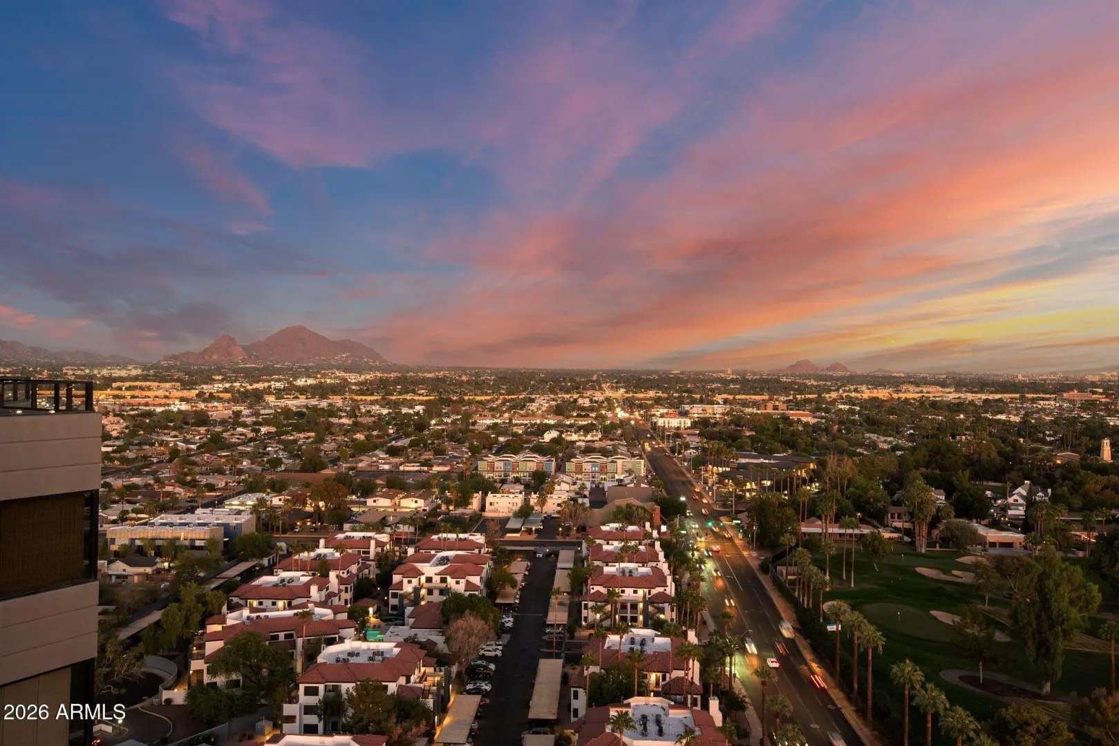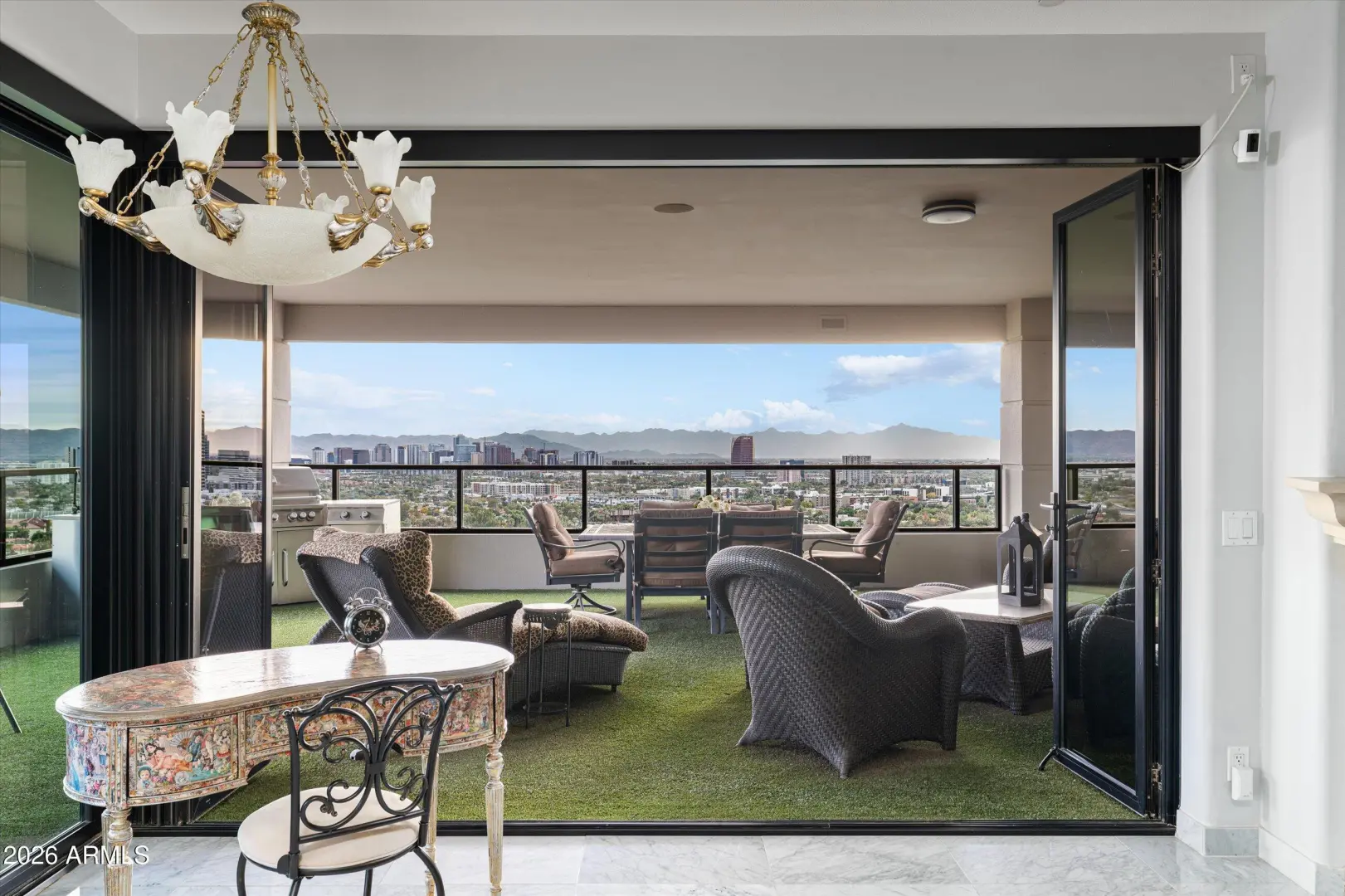 Live Above It All in This Exceptional Uptown Phoenix Penthouse Perched high on the 19th floor, this remarkable penthouse at Crystal Point redefines elevated living with sweeping views, expansive outdoor spaces, and a seamless indoor-outdoor lifestyle. From sunrise over the city to glowing sunsets across the Phoenix Country Club, every moment is framed by breathtaking scenery visible from nearly every angle. Designed to celebrate its commanding location, the residence features multiple oversized patios, each an extension of the living space, complete with a fireplace and built-in grill, creating an unmatched setting for entertaining or quiet evenings above the skyline. Floor-to-ceiling glass accordion doors and sliders dissolve the boundary between inside and out, flooding the