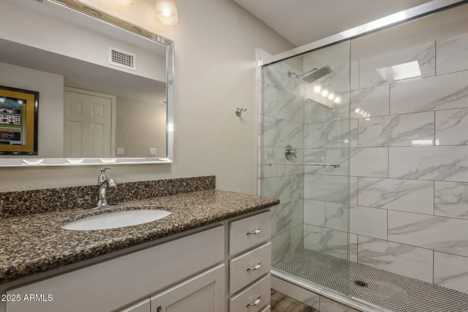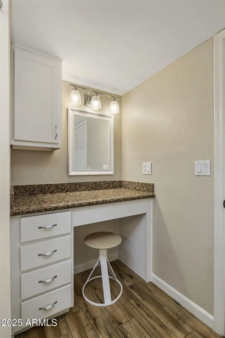 Move-in ready single-level 2BD/2BA Gemini home in the heart of Fountain Hills. Enter through the charming front patio into a bright and open layout featuring a remodeled kitchen with granite countertops, modern cabinetry, new appliances & upgraded wood-look tile flooring throughout. Enjoy abundant natural light from three skylights. The elegant primary suite includes a fully updated bathroom and a walk-in closet with custom organizers. Step outside to a lush backyard with a paved patio—ideal for relaxing or entertaining. The property includes a one-car attached garage and a spacious, air-conditioned laundry room off the garage—perfect for extra storage, hobbies, or workspace. This home is the perfect lock and leave for snowbirds or a great full time residence for the first time homebuyer