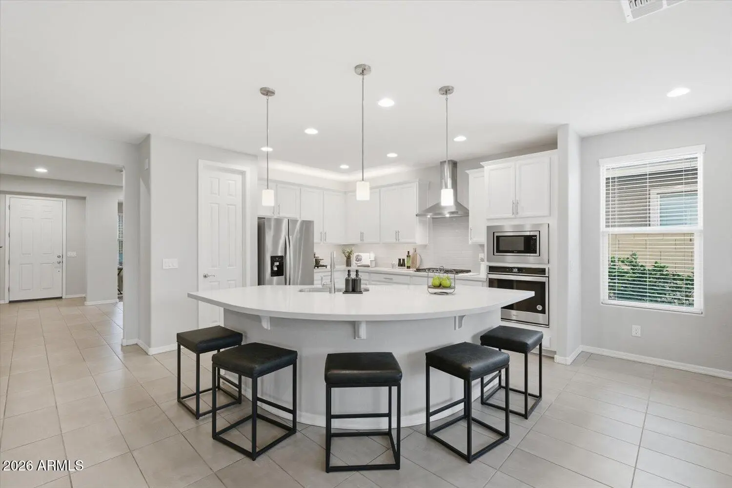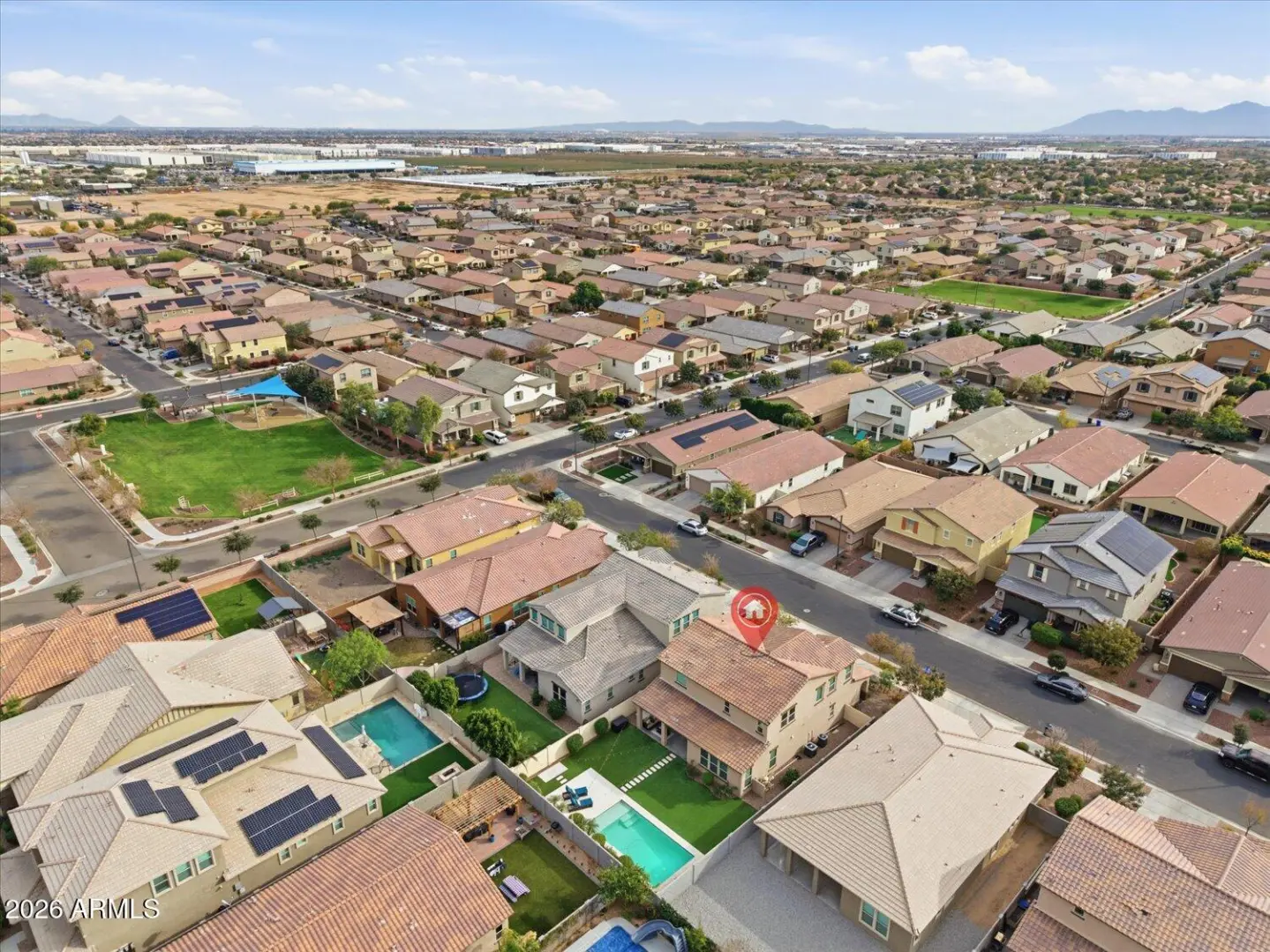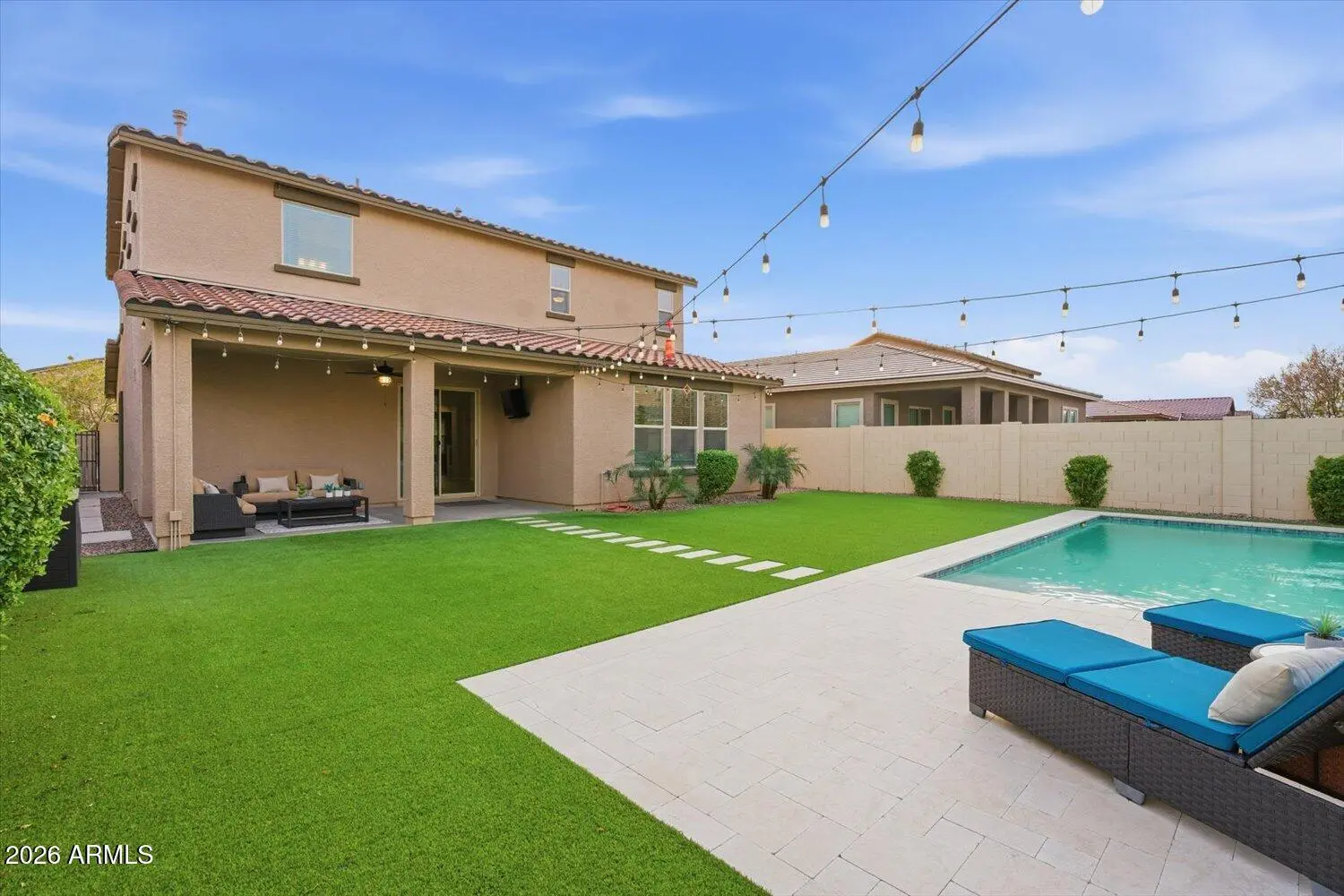 Welcome home to this light, modern 4-bedroom residence built in 2020, offering a 3-car garage and a resort-style backyard in the highly sought-after Homestead at Marley Park community. With 2,746 square feet of thoughtfully designed living space, this home delivers comfort and functionality — all just 2 miles from Surprise Stadium, home to Royals and Rangers Spring Training. The kitchen sits at the center of the home and features quartz countertops, a large island, walk-in pantry, custom cabinetry, and under- and over-cabinet lighting—ideal for everyday living and entertaining. The open floor plan creates an easy, functional flow throughout the main level. Upstairs,