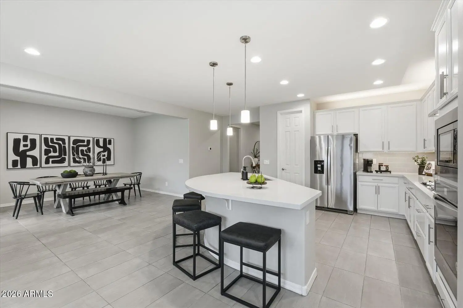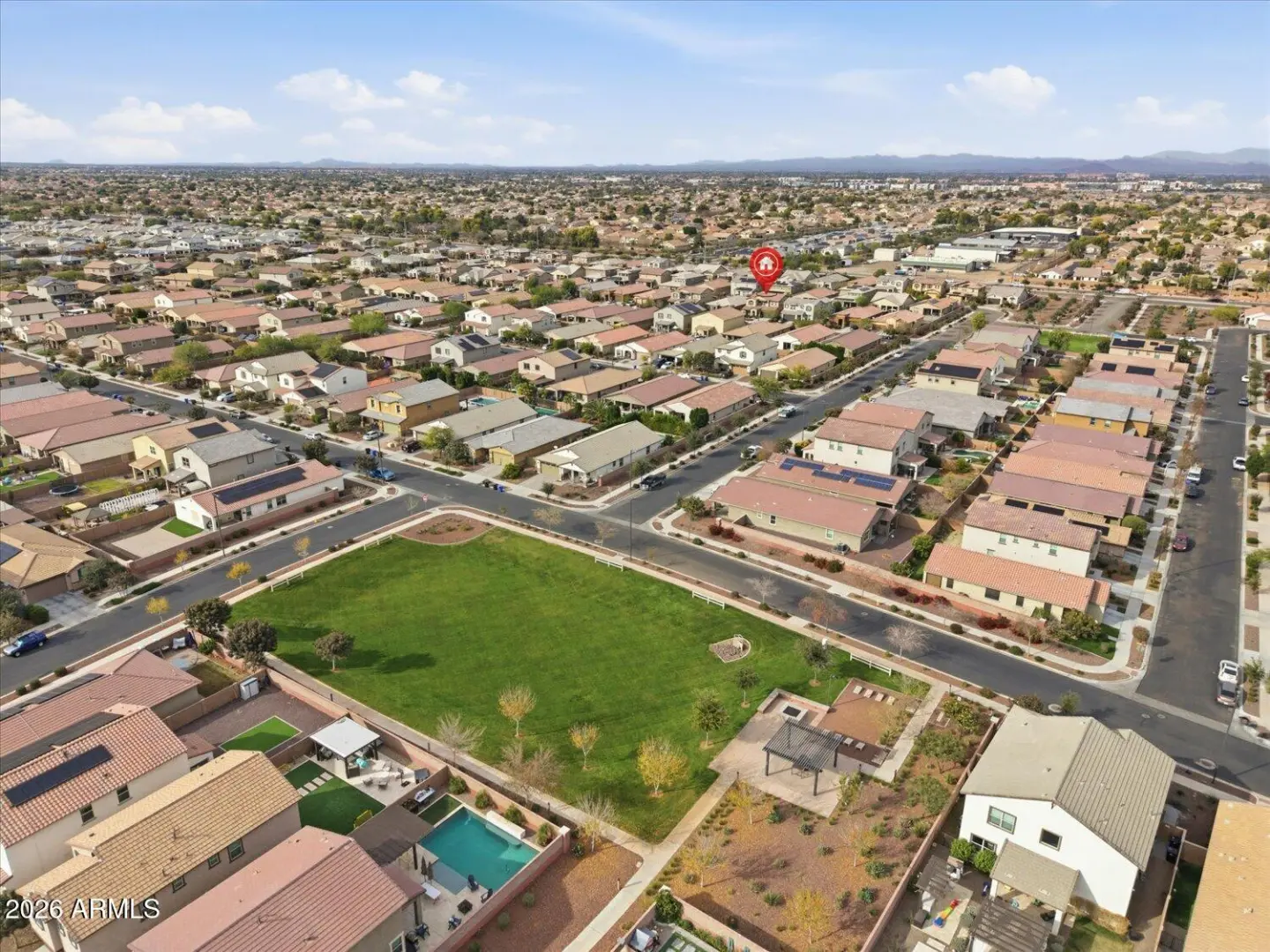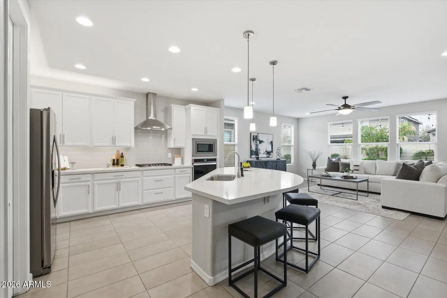Welcome home to this light, modern 4-bedroom residence built in 2020, offering a 3-car garage and a resort-style backyard in the highly sought-after Homestead at Marley Park community. With 2,746 square feet of thoughtfully designed living space, this home delivers comfort and functionality — all just 2 miles from Surprise Stadium, home to Royals and Rangers Spring Training. The kitchen sits at the center of the home and features quartz countertops, a large island, walk-in pantry, custom cabinetry, and under- and over-cabinet lighting—ideal for everyday living and entertaining. The open floor plan creates an easy, functional flow throughout the main level. Upstairs,