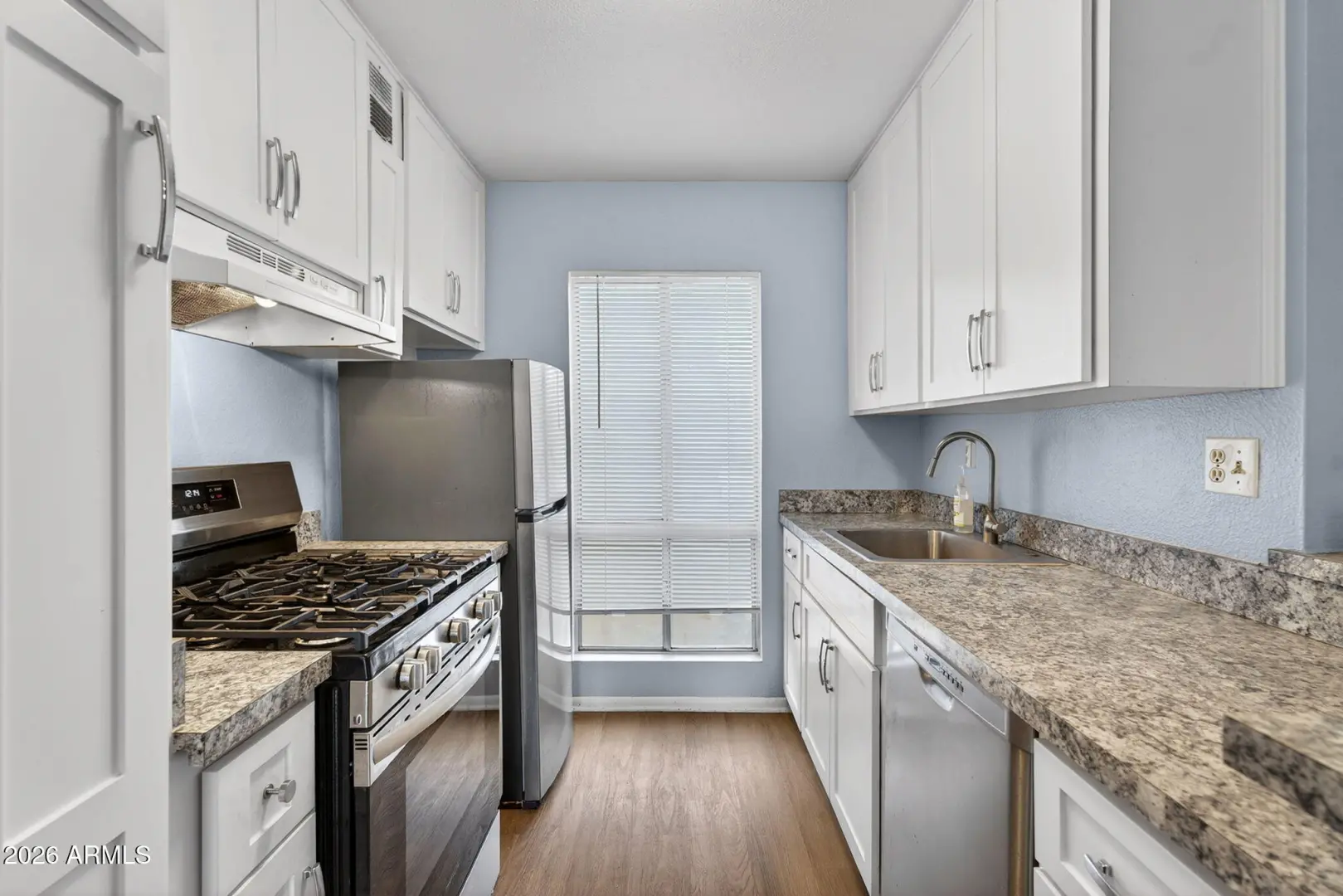 Updated 2 bed, 2 bath condo in a quiet, gated community offering exceptional value in a central location. Features newer luxury vinyl plank flooring, stainless steel appliances, updated fixtures, and refreshed bathrooms. Spacious, light-filled great room opens to a private balcony. Both oversized bedrooms include large double closets, plus abundant storage with a generous pantry near the kitchen. Rare 2/2 floorplan in this community. Enjoy a crystal-clear pool, shaded seating areas, and community laundry (with potential for in-unit laundry). Close to shopping, dining, and major freeways.