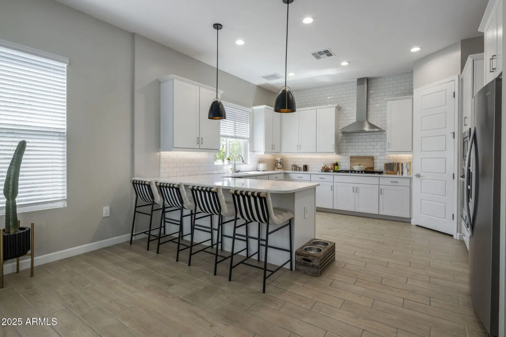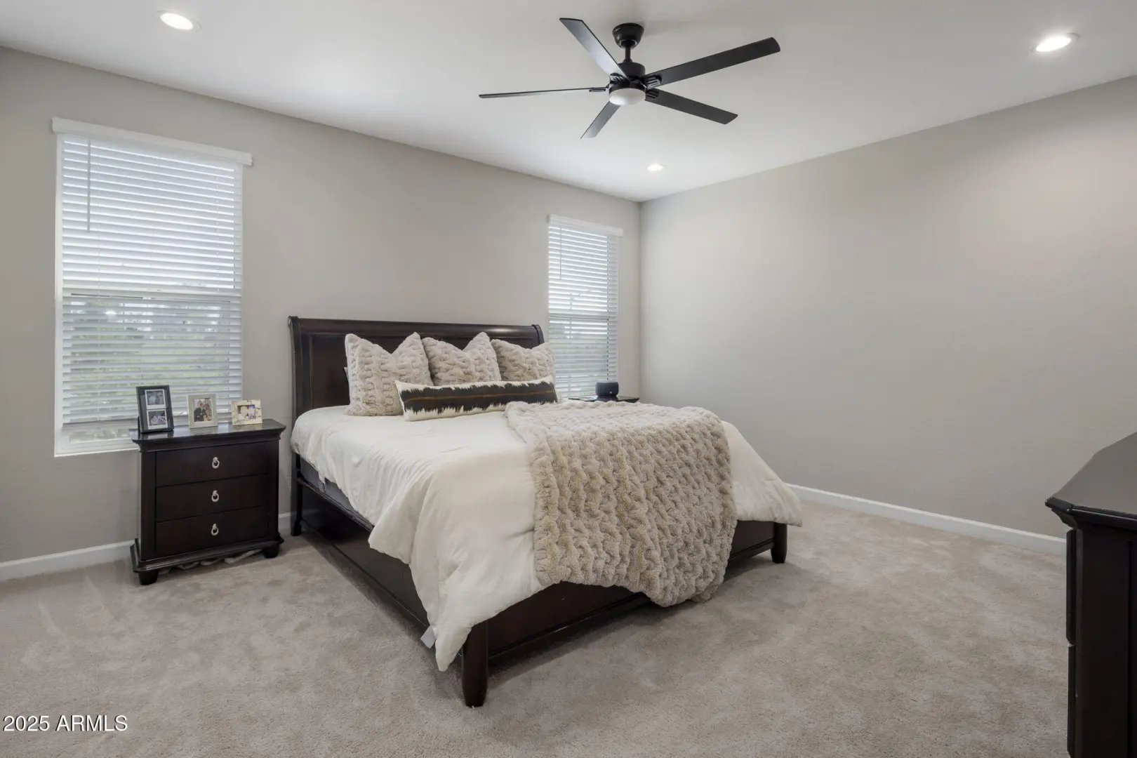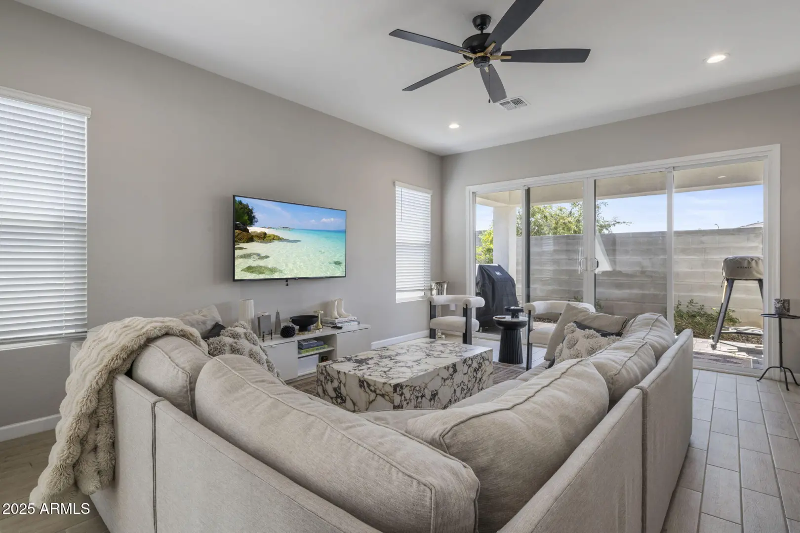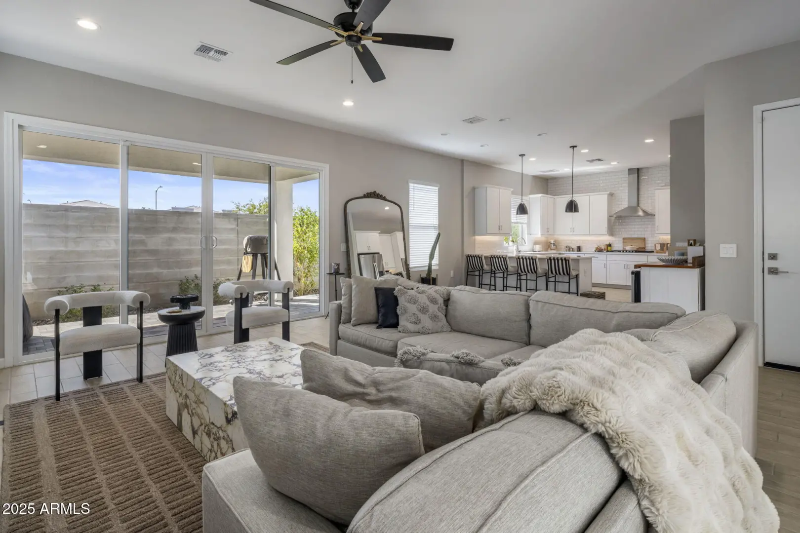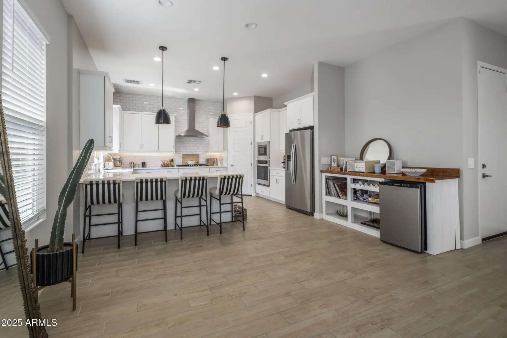 NO BACKYARD NEIGHBOR! Completely private prime lot in Arabella with NO neighbor behind or to one side. This light and bright move-in ready 4BD/2.5BA is located in the gated Arabella community near Loop 101 & SR-51. Open-concept floorplan with two patios, including private side courtyard . Wood-look tile throughout the first floor. Gourmet kitchen features white cabinets, quartz countertops , full tile backsplash, farmhouse sink, gas cooktop, pendant lighting and stainless steel appliances. Backyard has a paved covered patio and low maintenance turf! Other highlights include tankless water heater, smart home system, oversized full tiled master shower, upstairs laundry and so much more. Arabella offers gated entry, community pool, and a large central park Full 10 year roof warranty !!