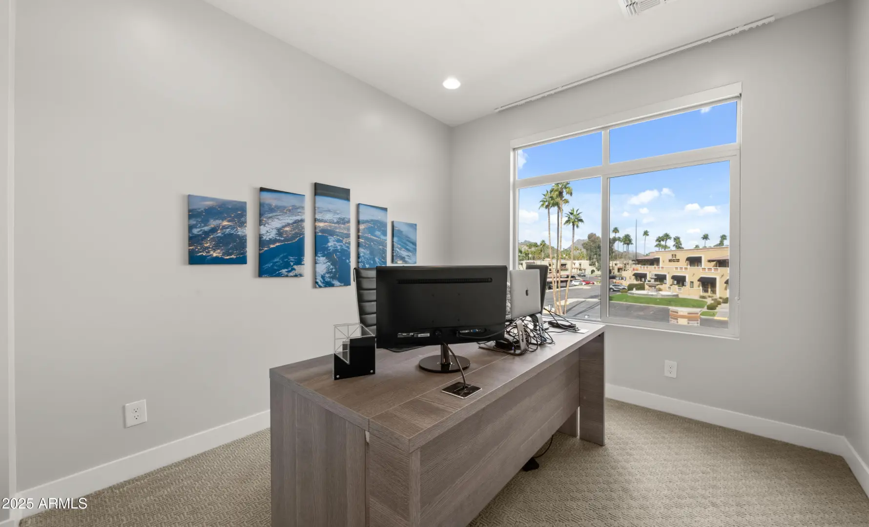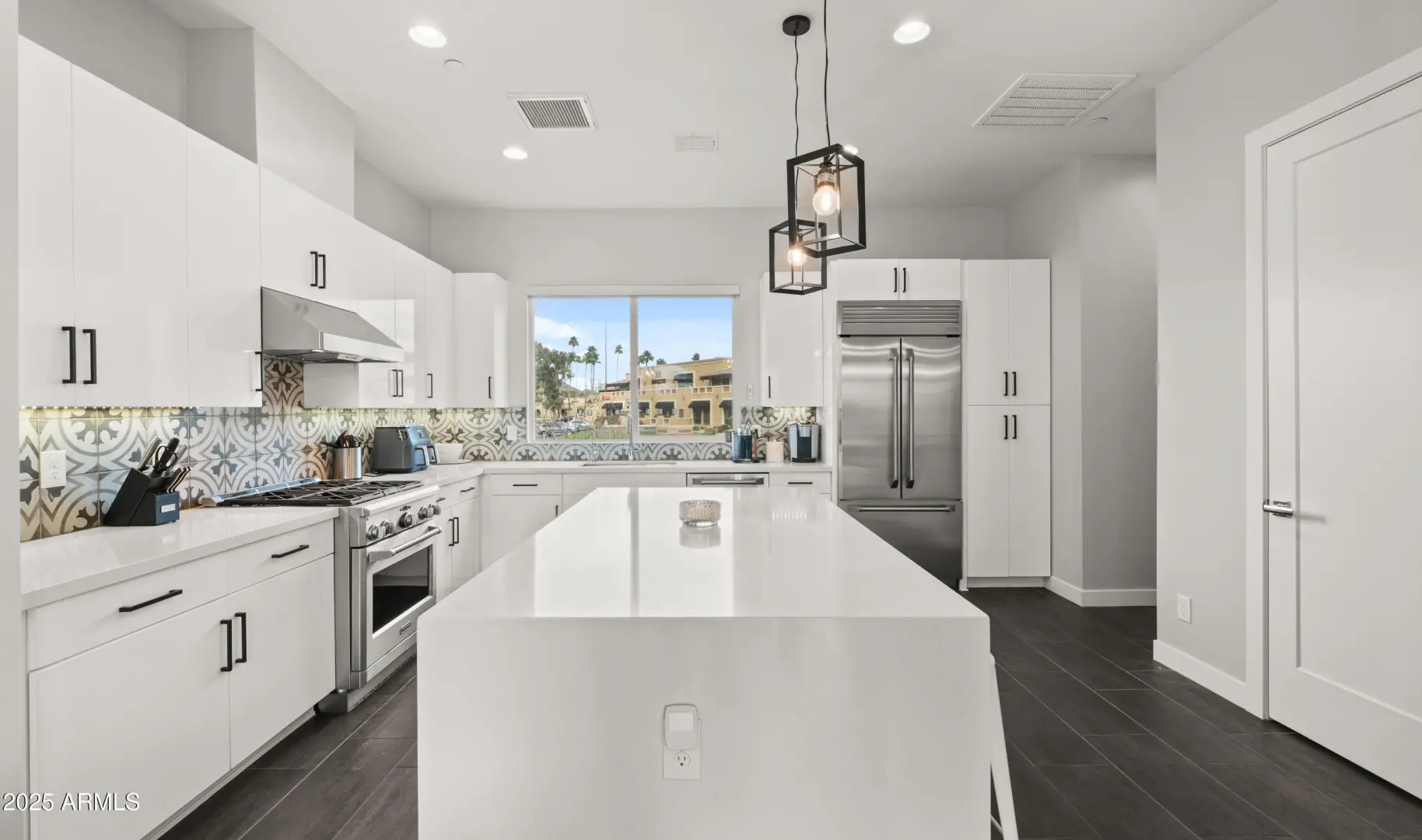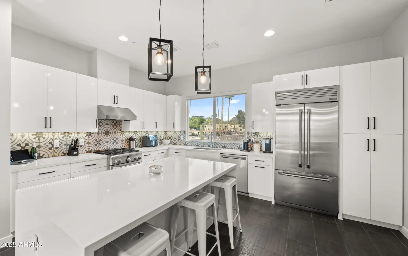 Terrific mountain and city views from the furnished roof deck and fast access to freeway, grocery, dining and hiking. Walk next door to iconic Best of Phoenix restaurant ''Aunt Chilada's'' or across the street to Hilton Resort At The Peak. 2019 construction with upgraded contemporary fixtures and designer finishes. This well designed, multi-level floorpan overlooks the pool and provides direct views Piestewa Peak and city lights. Ground floor den/office/playroom has a full bathroom and private patio. Kitchen has GE Monogram appliances, Ring camera/doorbell at front door and motorized window blinds throughout.