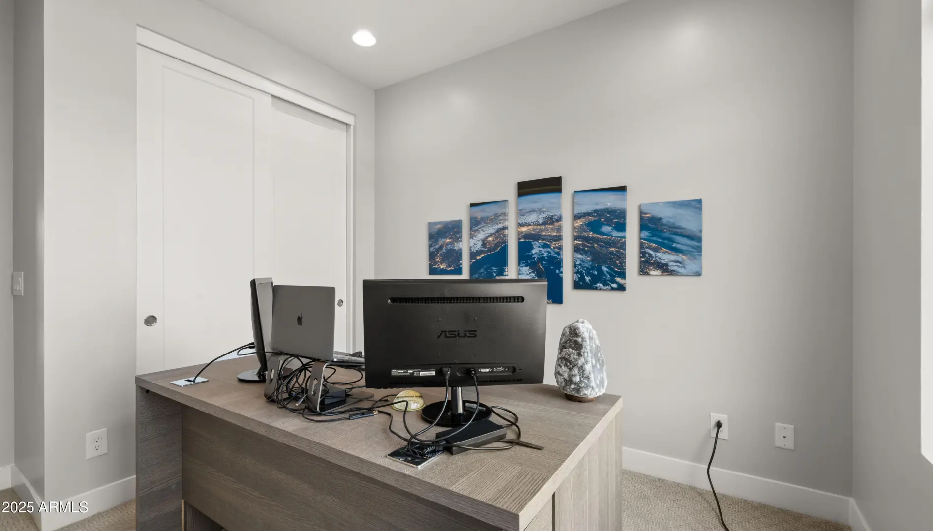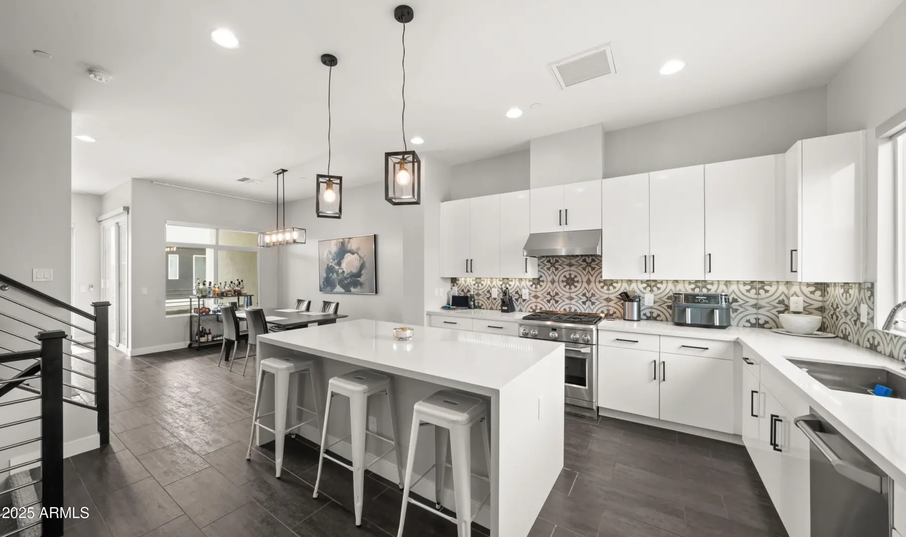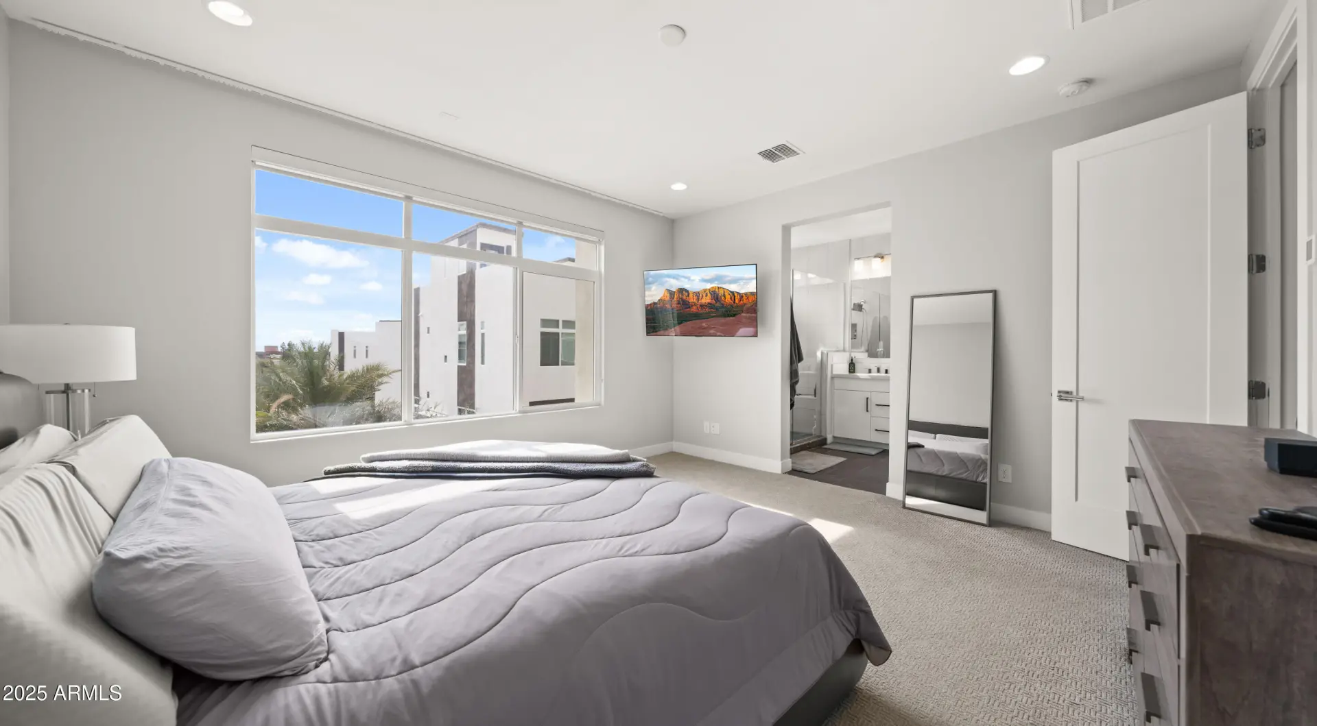 Terrific mountain and city views from the furnished roof deck and fast access to freeway, grocery, dining and hiking. Walk next door to iconic Best of Phoenix restaurant ''Aunt Chilada's'' or across the street to Hilton Resort At The Peak. 2019 construction with upgraded contemporary fixtures and designer finishes. This well designed, multi-level floorpan overlooks the pool and provides direct views Piestewa Peak and city lights. Ground floor den/office/playroom has a full bathroom and private patio. Kitchen has GE Monogram appliances, Ring camera/doorbell at front door and motorized window blinds throughout.