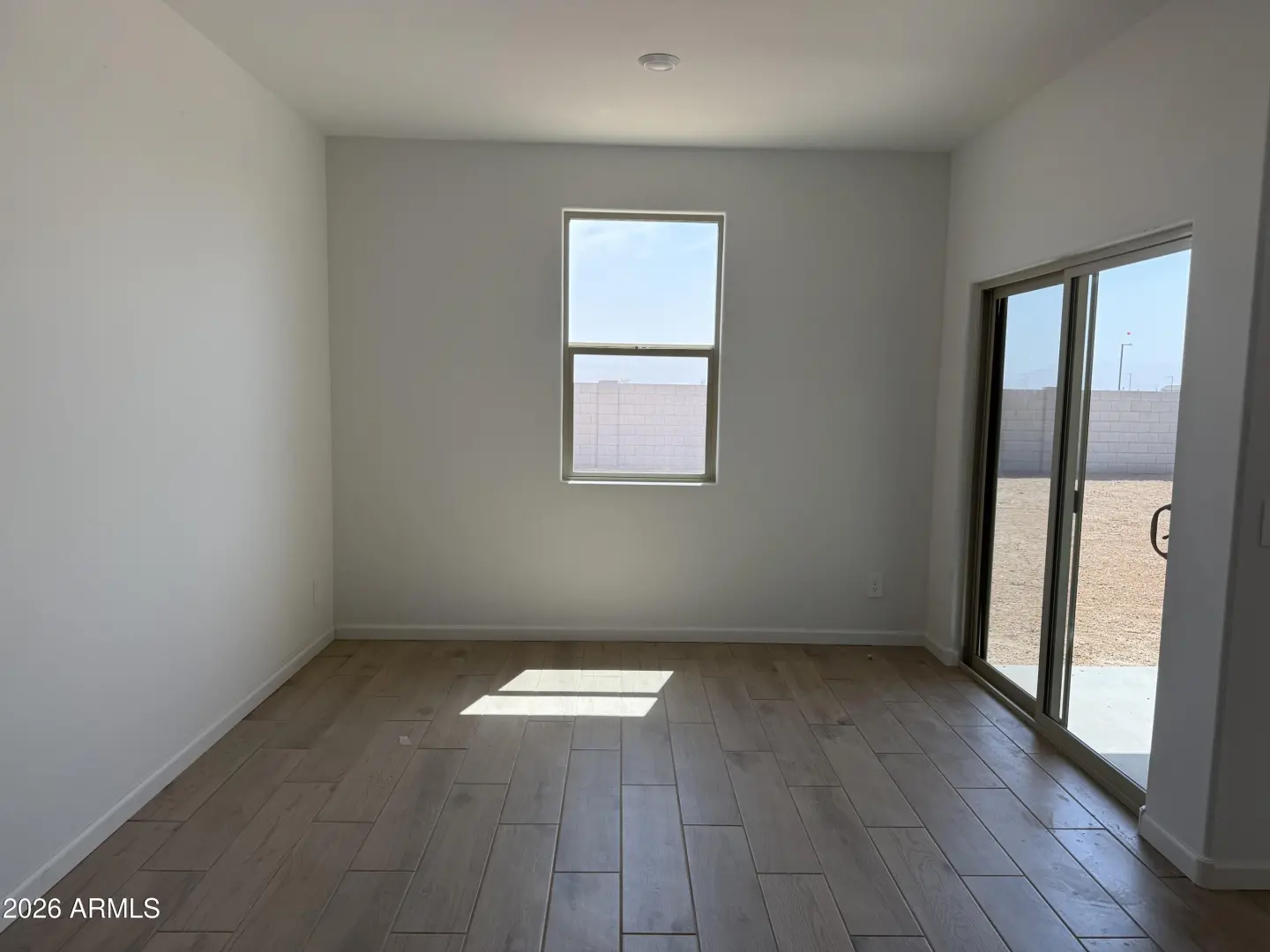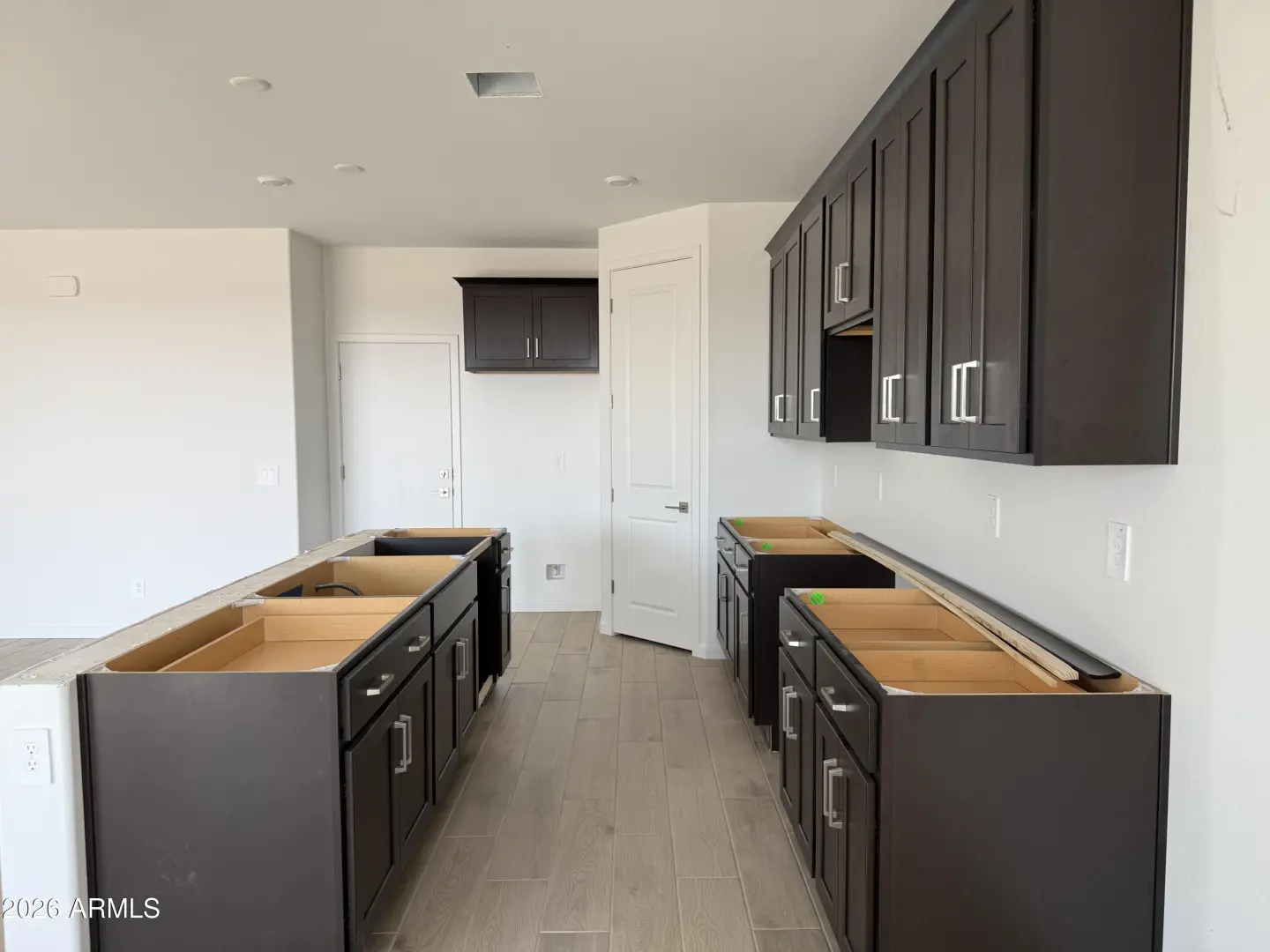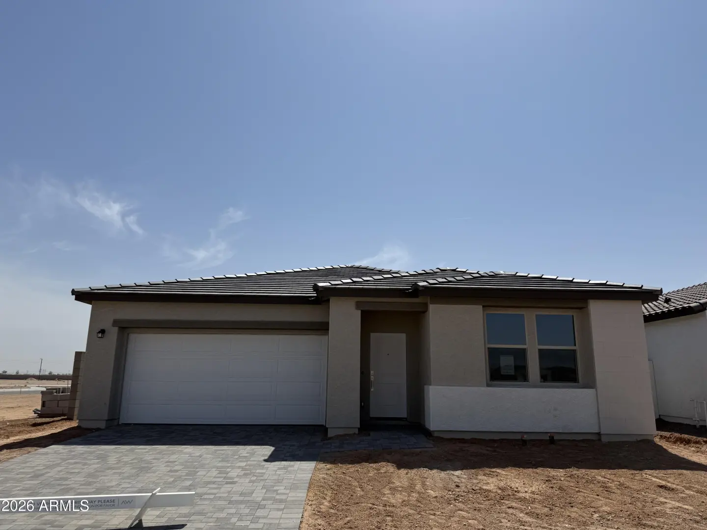 Brand new community in Surprise! This stunning single story home offers 1,567 sq ft of functional living space. It features 3 bedrooms, 2 bathrooms, and a 2-car garage. The open concept kitchen is perfect for entertaining and features an Island, a walk-in pantry and stainless steel appliances. It also offers our Roosevelt Collection which includes 42'' expresso cabinets, ivory biancone quartz kitchen countertops, mosaic carrara tile kitchen backsplash, and 8x36 wood looking plank tile in all the common areas. The great room offers a 4-panel center sliding glass door so you can step out into your covered patio to enjoy indoor/outdoor living in your backyard with friends and family. The primary suite has a spacious walk-in closet, double sinks, walk-in shower, and an additional linen