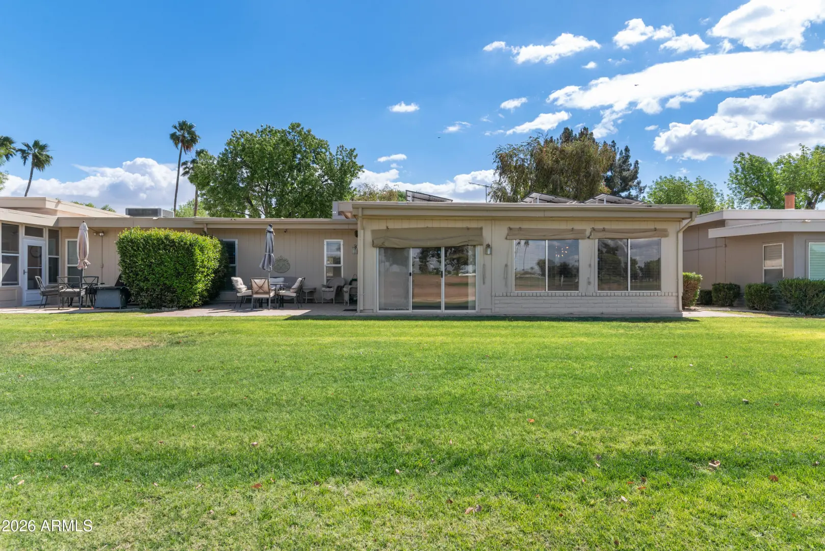 Welcome to this charming and well-maintained home located in the heart of Sun City's active adult community. This home offers a comfortable layout w/ spacious living areas, abundant natural light, and a functional kitchen with plenty of storage. The Arizona room with an A/C unit provides additional space perfect for relaxing, entertaining, or hobbies. There's roll down shades outside the home to keep the home cool. Enjoy the low-maintenance backyard and quiet neighborhood setting. Newer water heater (2024), HVAC (2023), roof (2023). Sun City residents enjoy access to golf courses, rec centers, pools, fitness centers, clubs, and social activities. Conveniently located near shopping, restaurants, and medical facilities, this home is perfect for full-time living or a seasonal Arizona retreat.