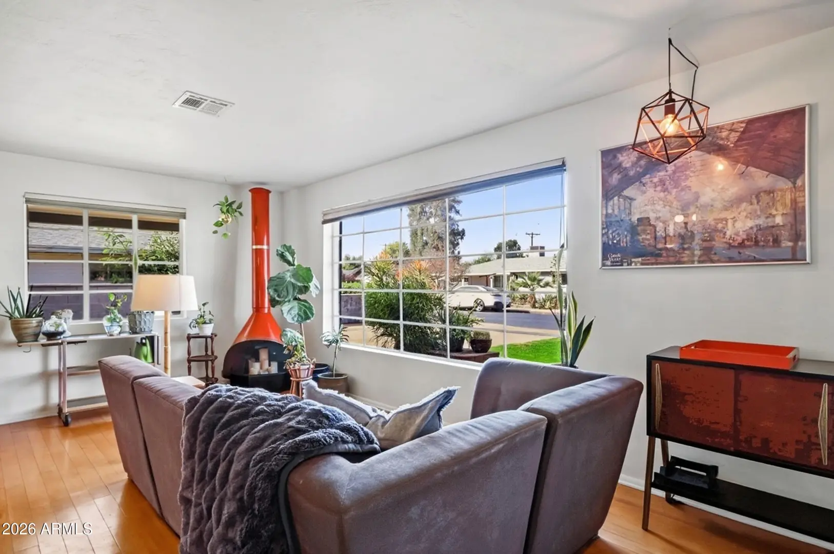 Experience the ultimate midtown Phoenix lifestyle with this Biltmore Area gem in the established neighborhood of Highland Estates. This single family home exudes the charm of a 1950s Phoenix rancher on a 7.000+SF grass lot. With kitchen and dining anchored in the heart of the home, there are two separate living areas including a large great room plus, a temperature controlled office space in the backyard. Updated Mechanics - Roof (2023) and HVAC (2021). Set in Madison Schools and walking/biking distance to Town & Country, Biltmore area shops, midtown restaurants & the Arizona Canal.