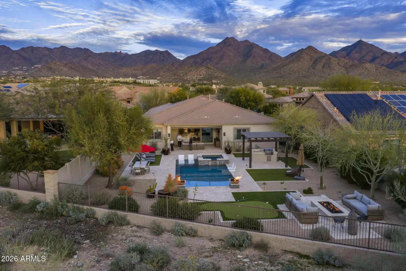 Sophisticated luxury living awaits in guard-gated Windgate Ranch, offering the coveted North Scottsdale lifestyle in a community with resort amenities, McDowell Sonoran Preserve access and city convenience. Remodeled in 2025 including a freshly painted exterior and interior, this Toll Brothers single-level Villaga design is set on a premium homesite backing to desert preserve, capturing tranquil privacy and mountain views. Inside, the refreshed interior is light, clean and contemporary - featuring a new custom front door, new hardwood flooring throughout the main living areas, new wide plank baseboards, new designer lighting, and a freshly painted neutral palette that complements any style. The spacious great room is anchored by a custom built-in media wall, ideal for entertainment,
