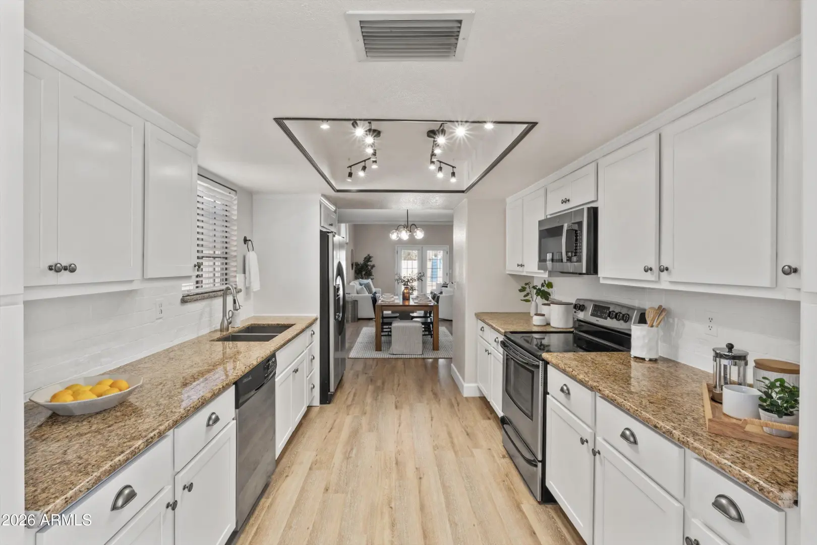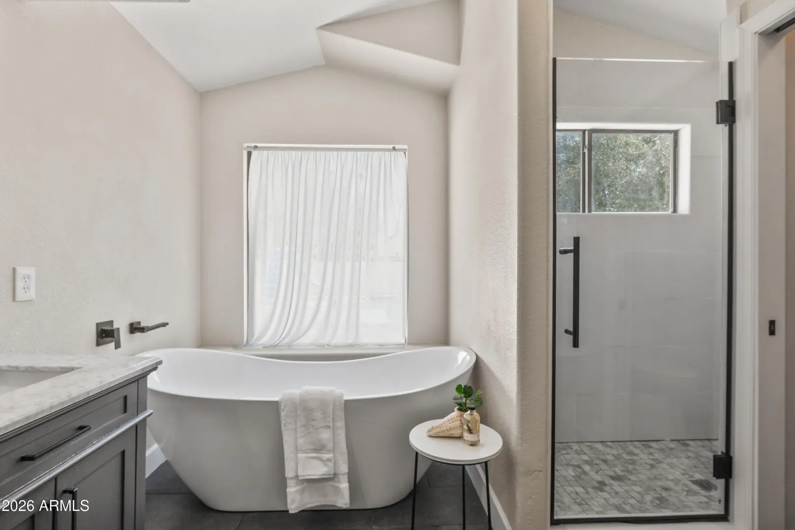 This is your time to own a designer estate in Arrowhead Ranch. With four bedrooms and a massive loft, there's room to support any lifestyle without stepping on each other's toes. The layout is open, flexible, and made for real living, not to mention fully remodeled to suit today's modern buyer. The floorplan is everyone's favorite with the designer primary bedroom and bathroom on the main floor and remaining 3 large bedrooms and spacious loft upstairs. The primary suite is a true reset button: a freestanding soaking tub, separate walk-in shower, and custom tile work that feels pulled straight from Architectural Design magazine. Every upgrade was chosen with intention, creating a home that feels current, warm, and effortlessly stylish.