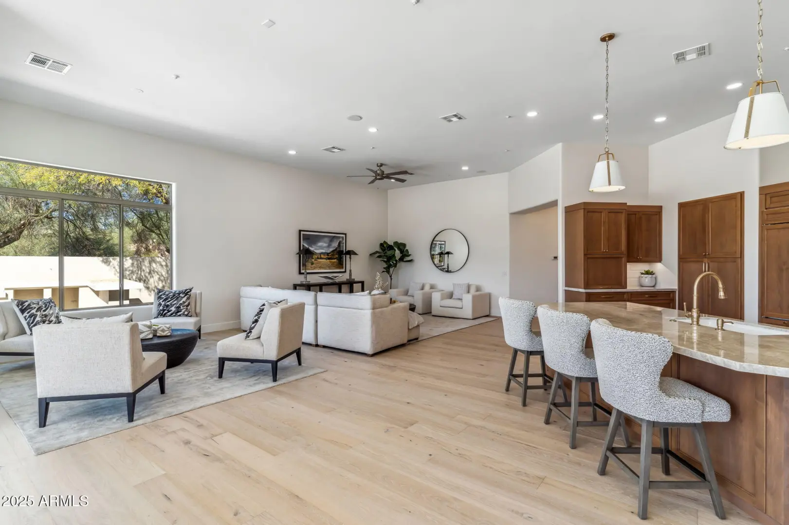 ROOF UNDERLAYMENT REPLACED FEB 2025 WITH 15-YEAR TRANSFERABLE WARRANTY | SMART HOME PRE-WIRE (2024) *See documents tab for full list of improvements* Welcome to this beautifully curated residence in the prestigious, guard-gated Talon Retreat at Grayhawk, where thoughtful design meets modern luxury. From the moment you enter, you'll notice the seamless blend of sophistication and comfort, highlighted by European White Oak hardwood flooring throughout the main living areas and bedrooms, complemented by designer tile in the bathrooms. The open-concept floor plan was designed with both everyday living and entertaining in mind. The chef's kitchen is a true showpiece, featuring custom cabinetry, Taj Mahal quartzite countertops, and a premium appliance suite including a Wolf 36'' gas rang