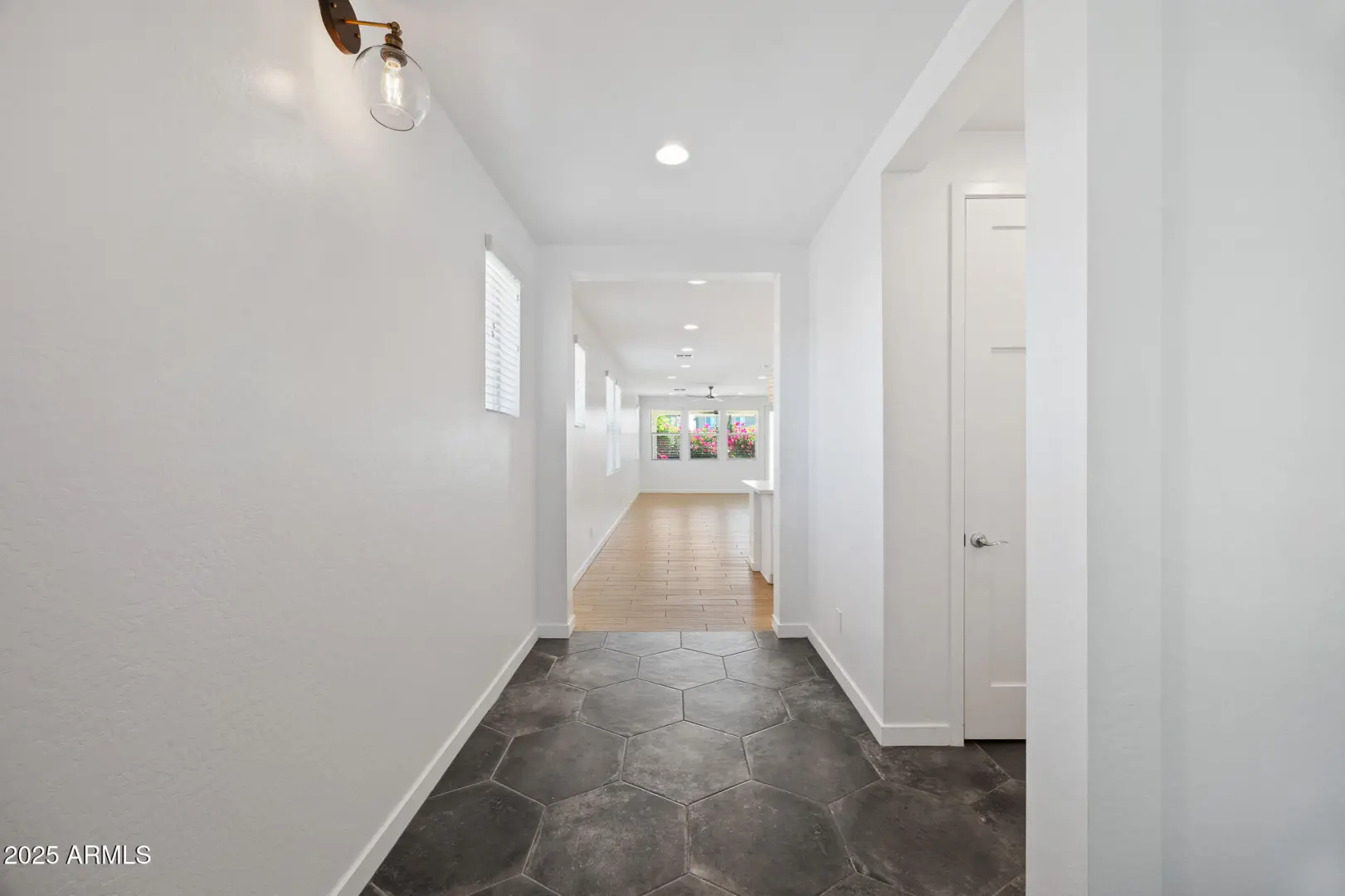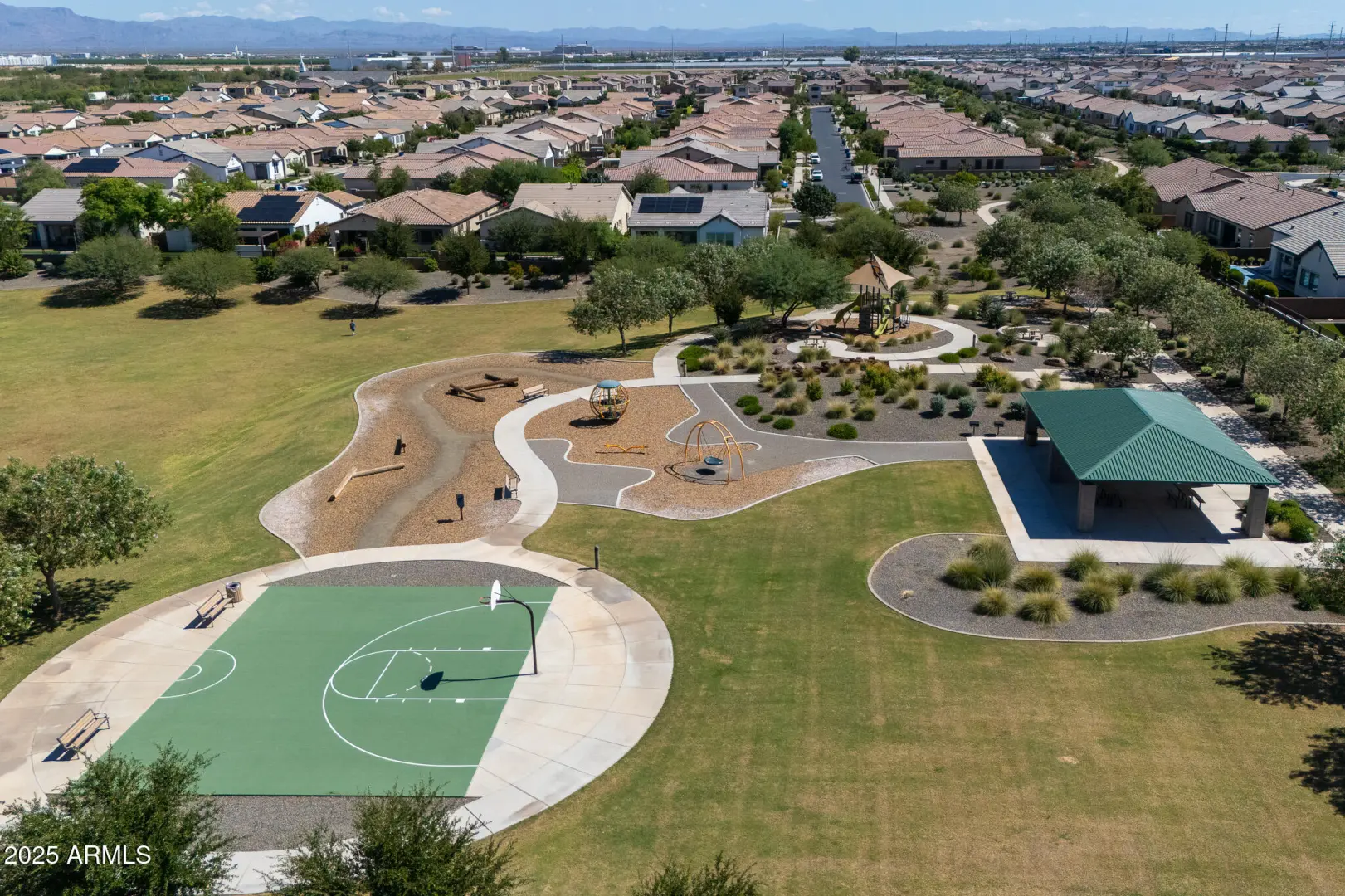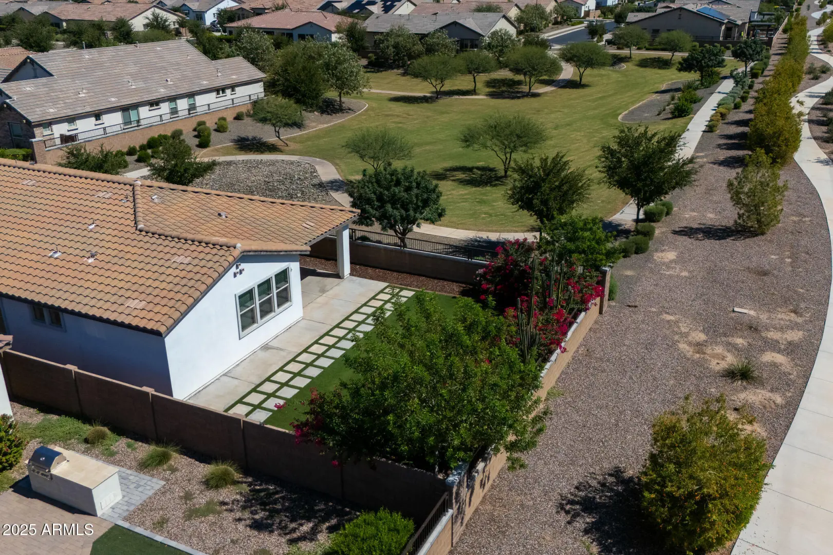 This home proves you don't have to settle for builder basics to get elevated living. Ideally positioned next to a lush greenbelt with walking paths and no home directly behind, it offers the feel of a sprawling backyard - perfect for bike rides, football tosses, or evening strolls -without the upkeep. Inside, the open great room is made for everyday living and entertaining, featuring designer touches like hex tile and wood-plank tile flooring. A flexible bonus storage room easily serves as a home office, craft space, or extra pantry. Outside, enjoy a low-maintenance yard with turf, vibrant bougainvillea, sunset views, and added privacy. Just 1 mile to Costco, 2 miles to Queen Creek Marketplace, 4 miles to SR-24, and minutes to Mesa Gateway Airport—location and lifestyle wrapped into one.