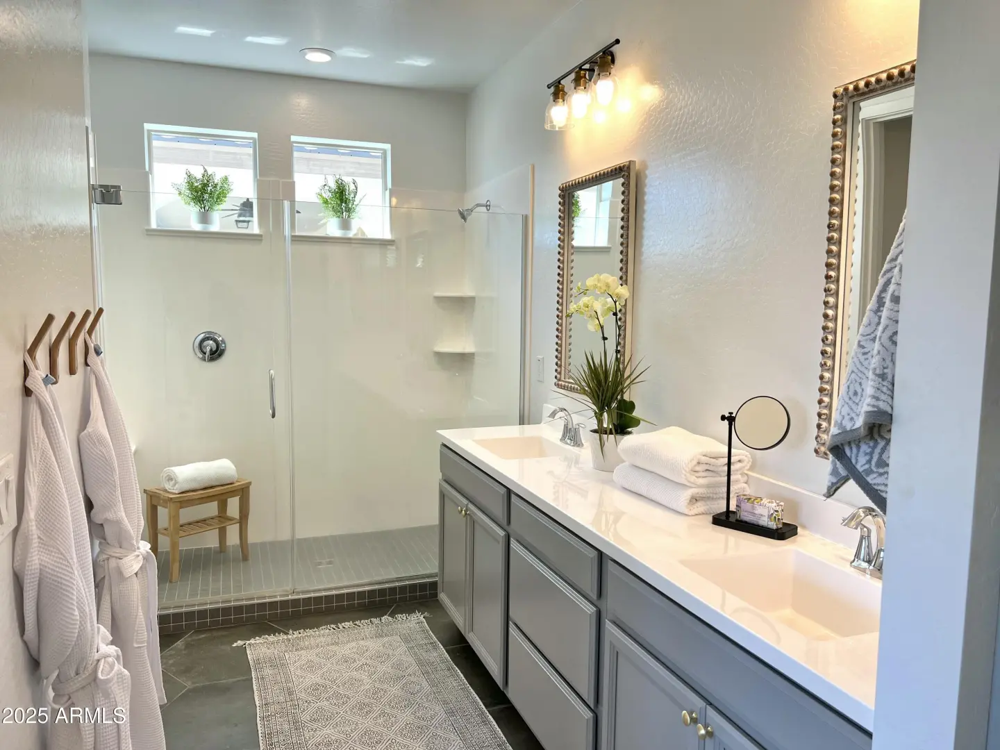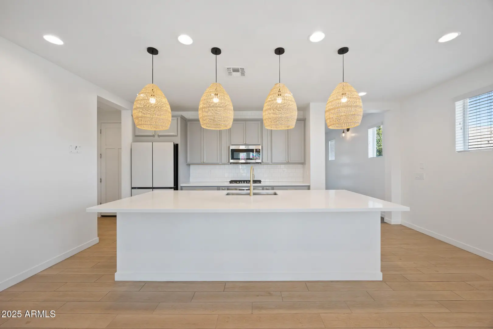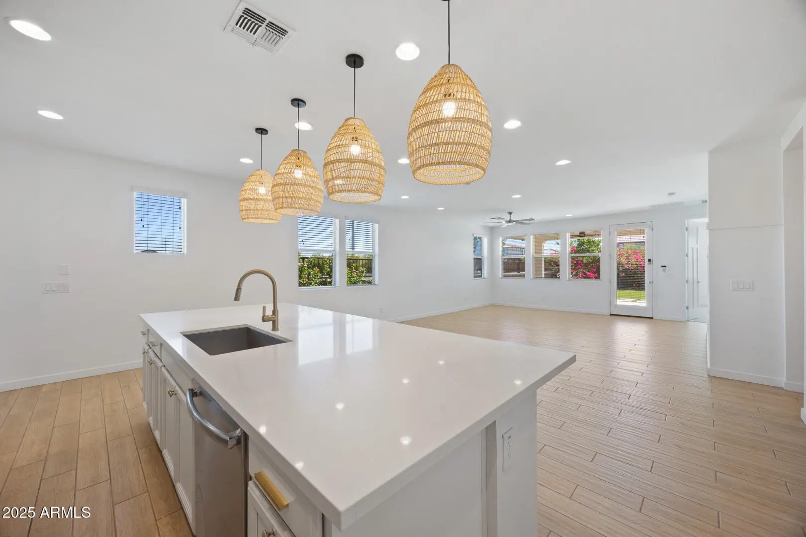 This home proves you don't have to settle for builder basics to get elevated living. Ideally positioned next to a lush greenbelt with walking paths and no home directly behind, it offers the feel of a sprawling backyard - perfect for bike rides, football tosses, or evening strolls -without the upkeep. Inside, the open great room is made for everyday living and entertaining, featuring designer touches like hex tile and wood-plank tile flooring. A flexible bonus storage room easily serves as a home office, craft space, or extra pantry. Outside, enjoy a low-maintenance yard with turf, vibrant bougainvillea, sunset views, and added privacy. Just 1 mile to Costco, 2 miles to Queen Creek Marketplace, 4 miles to SR-24, and minutes to Mesa Gateway Airport—location and lifestyle wrapped into one.