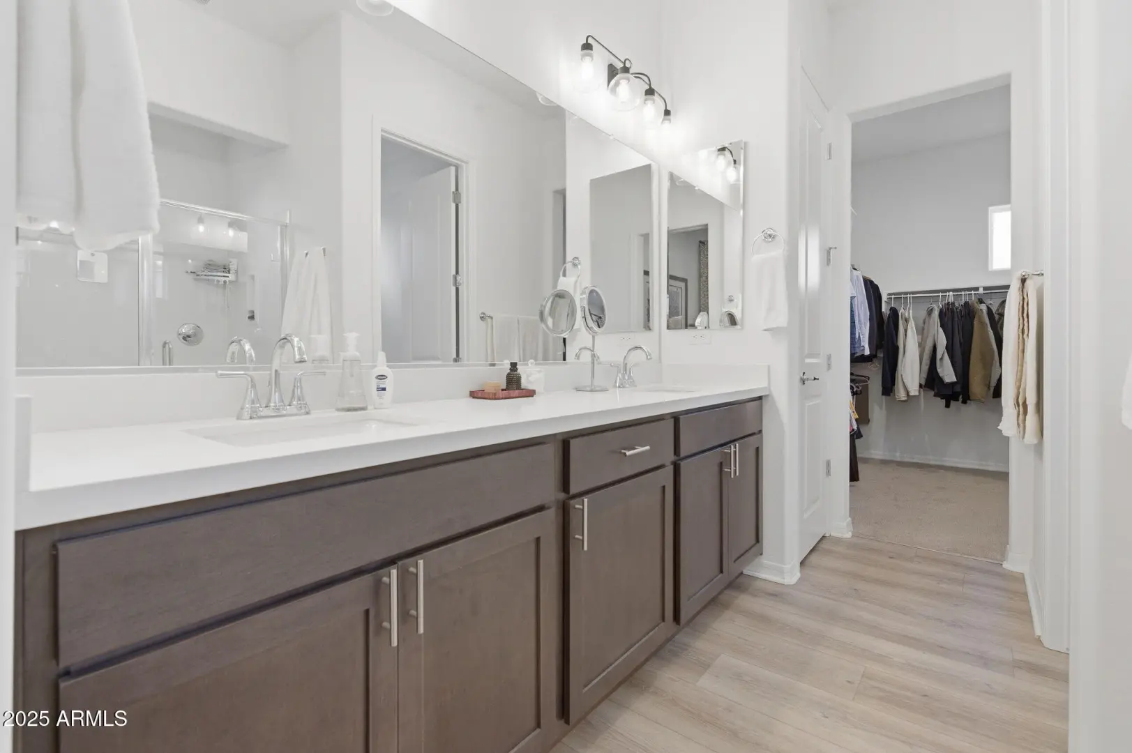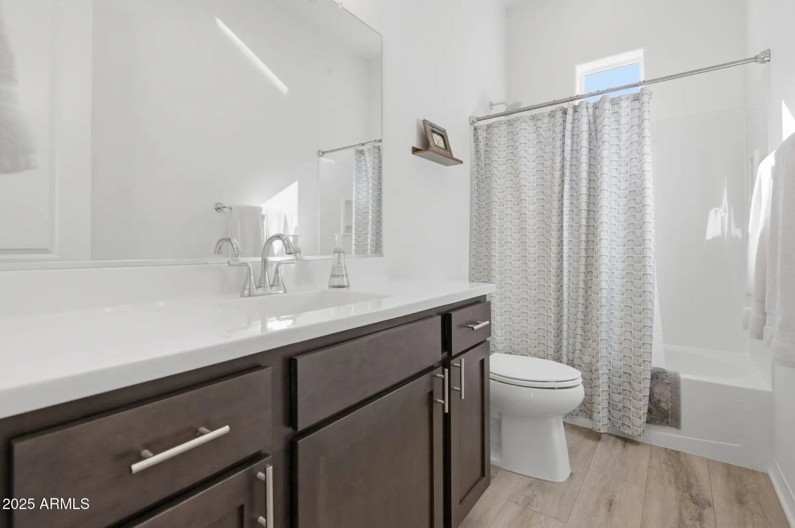 Welcome to 2142 W Hide Trl—where the convenience of a newly built home meets the luxury of thoughtful upgrades already completed for you (window treatments, fans, smart home features, completed landscaping etc). Located in the highly sought-after Union Park at Norterra, this popular floor plan offers the perfect blend of functionality, style, and community living. Step inside to an open, modern layout featuring the primary suite conveniently located downstairs, ideal for privacy and ease. The main level also includes a bonus half bath, a bright, airy living space, and a beautifully designed kitchen and formal dining room. A 3-car tandem garage provides ample parking, storage, or room for a home gym or workshop—another valuable perk of this floor plan. Upstairs, you'll find spacious seco