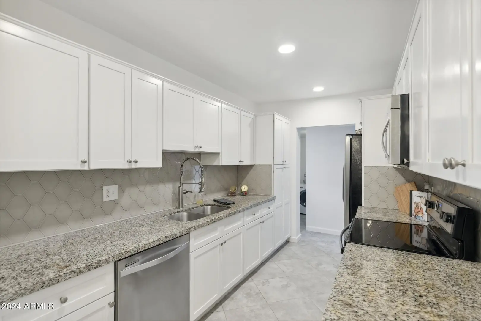 Nestled under the canopy of mature trees on a charming, walkable street, this home blends updated finishes with cozy character. The layout offers three bedrooms and a dedicated office/flex room—perfect for work-from-home or hosting. The kitchen features white cabinetry, granite countertops, stainless appliances, and white hex tile backsplash, opening to a dining nook with mid-century vibes. French doors in the oversized primary suite lead to a private patio, while the backyard is made for lounging with multiple seating areas. Available fully furnished and move-in ready! Rent is based on a year lease, which is preferred.