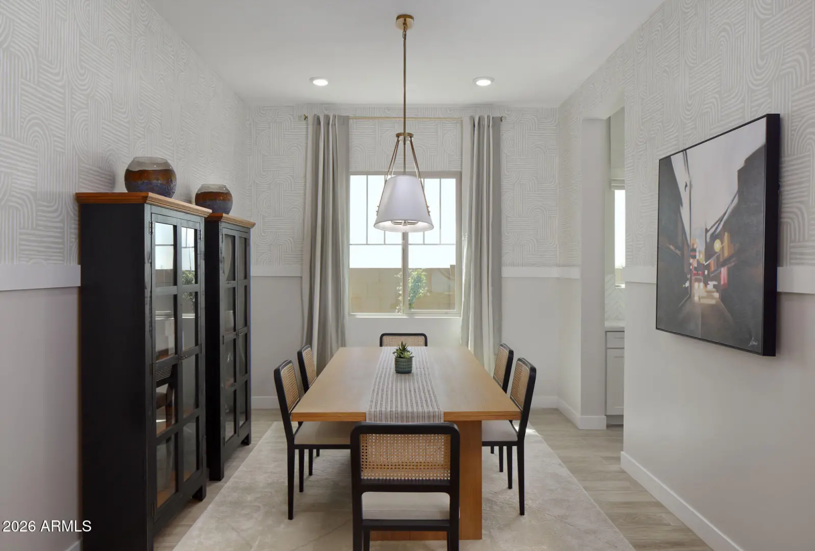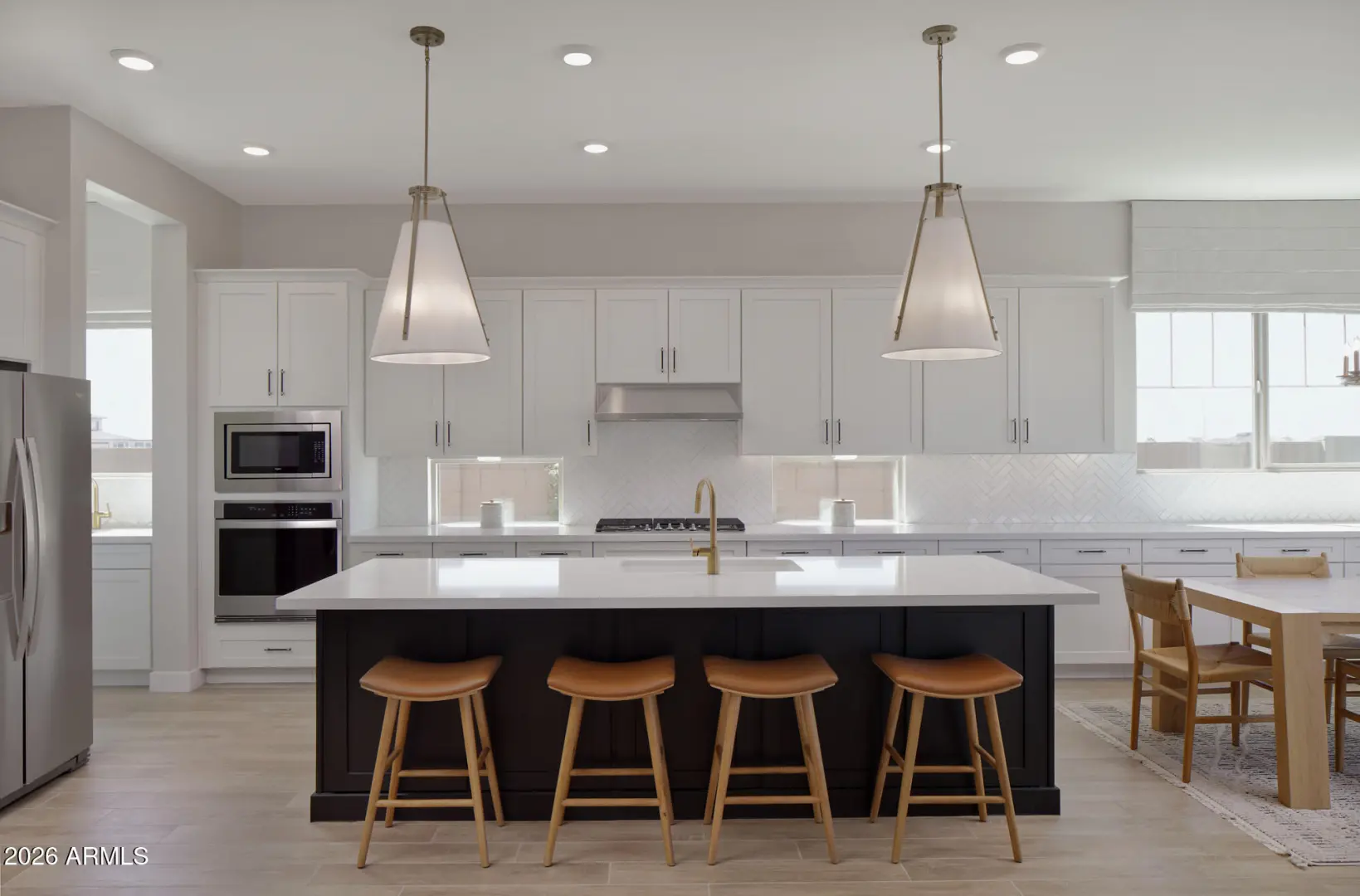 Welcome to the Topaz Model—an architectural showpiece where elevated design meets effortless luxury. From the moment you step inside, soaring 10-foot ceilings and light wood plank tile flooring are bathed in natural light, creating an airy, gallery-inspired ambiance. Textured 60/40 walls and a custom two-tone color palette add depth and warmth, setting the stage for a home that feels both curated and confidently stylish. Every detail has been intentionally selected to balance high-design aesthetics with everyday livability. At the heart of the home, the gourmet kitchen commands attention with crisp white perimeter cabinetry, a matching white butler's pantry, and a dramatic deco-wrapped black island that anchors the space as both a visual centerpiece and gathering hub. Sunlight