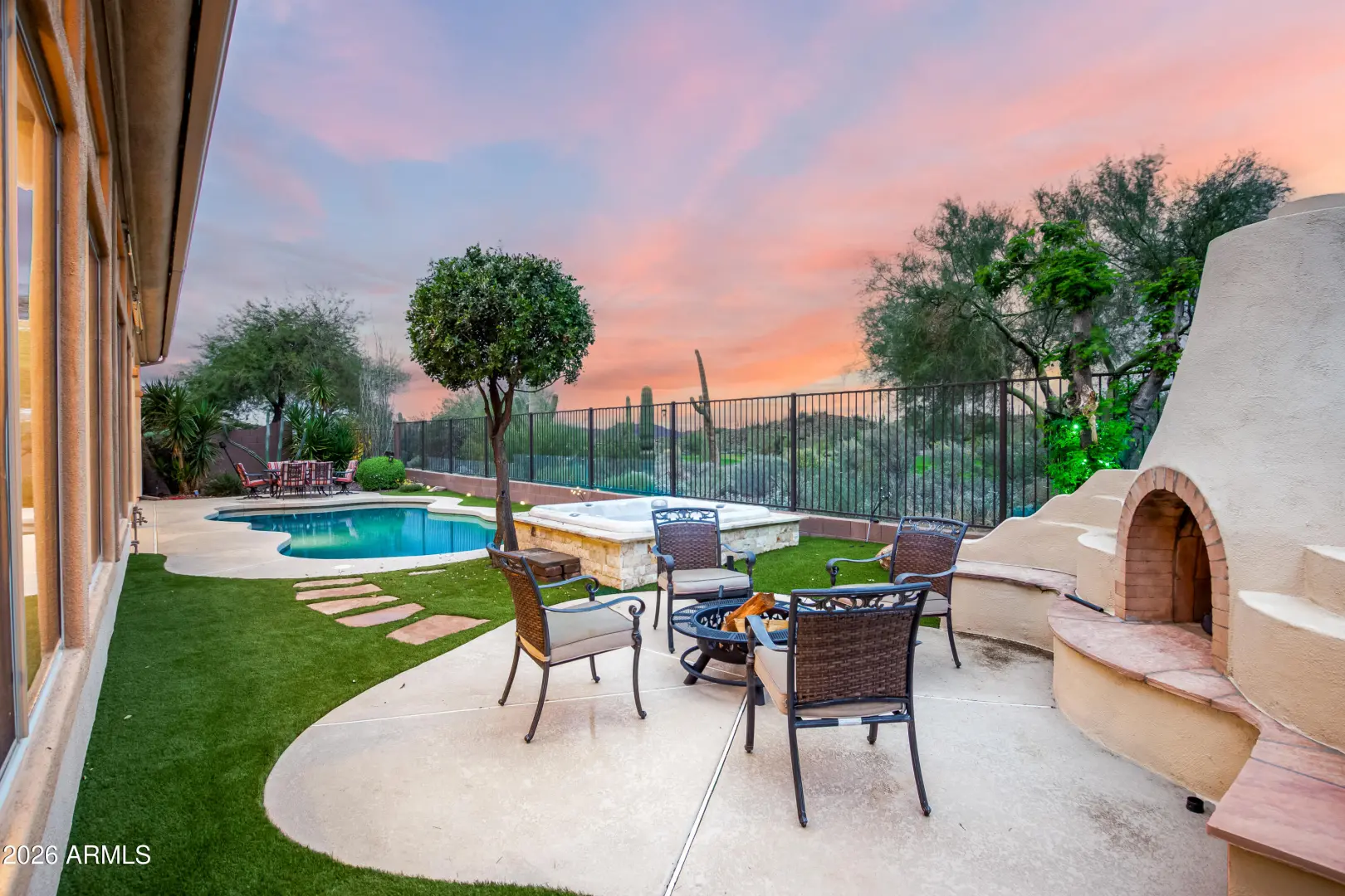 Welcome to resort-style living in this fully upgraded Anthem Country Club home, where panoramic golf course and mountain scenery frame everyday life. Inside, you'll find brand-new flooring throughout and an expanded kitchen island that creates the perfect gathering spot for cooking, conversation, and hosting. The flexible floor plan includes a 4th bedroom/home office enhanced with stylish double doors, offering privacy without sacrificing natural light. Outdoors, the backyard is designed for fun and relaxation, featuring a sparkling pool, built-in spa, a custom putting green, and an impressive 60-foot turf area ideal for play or pets. With fresh finishes, thoughtful enhancements, and unforgettable views, this residence blends comfort and luxury at every turn.
