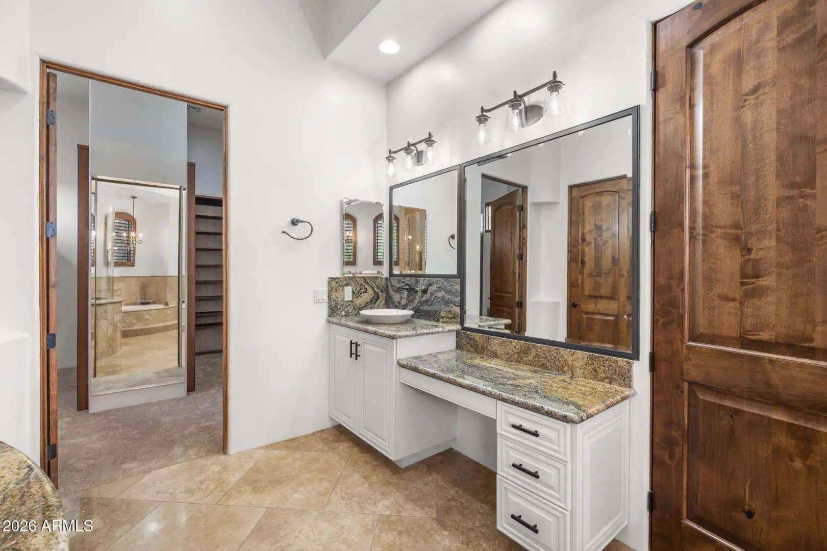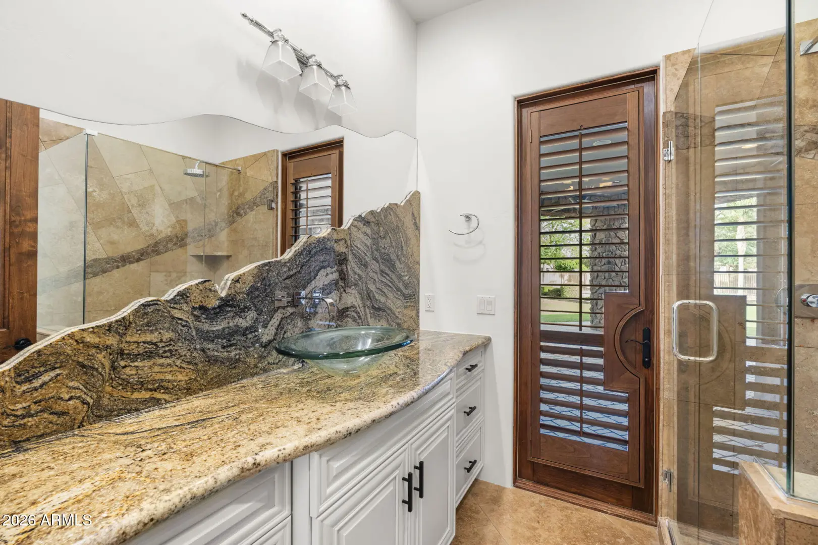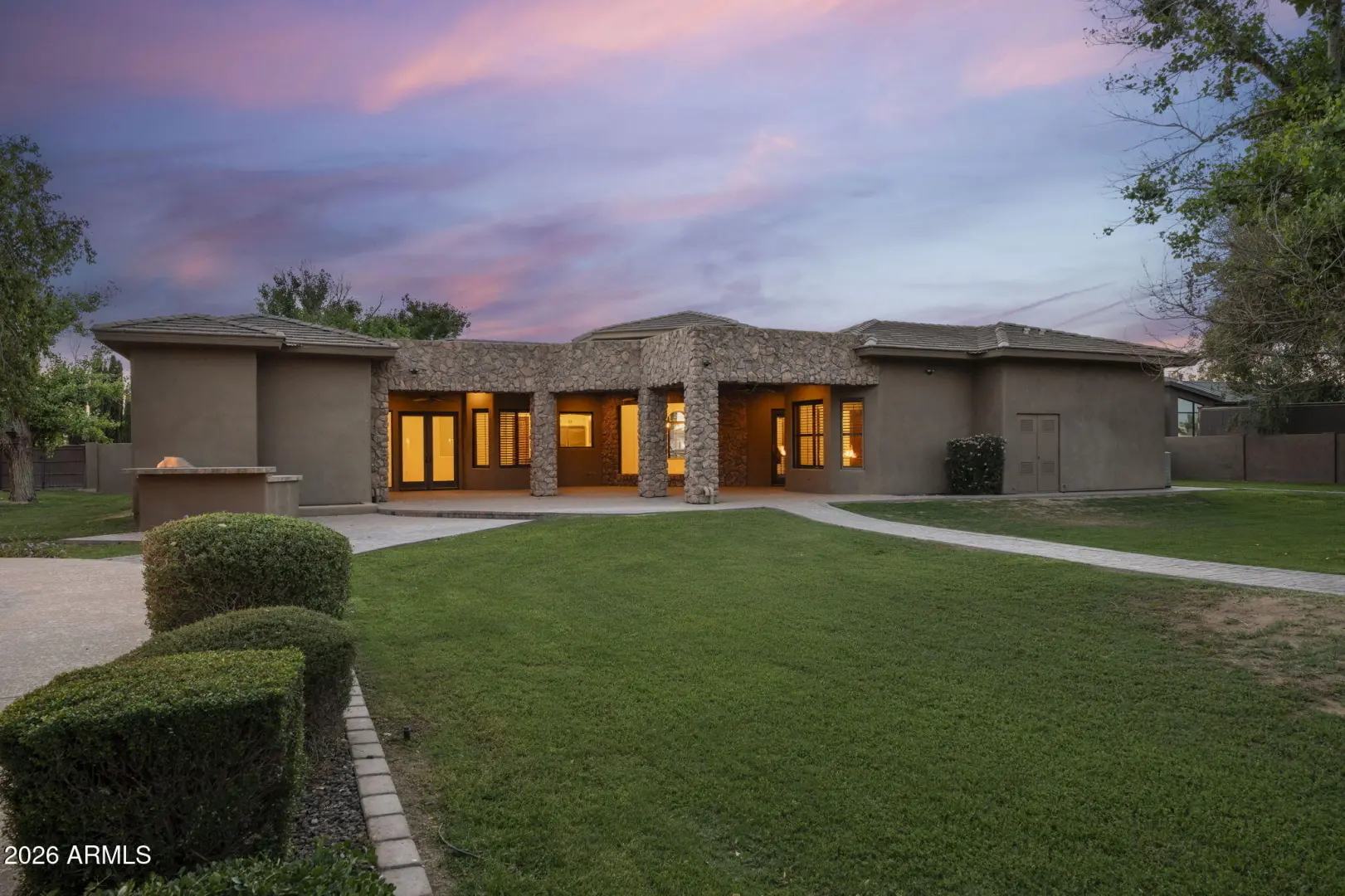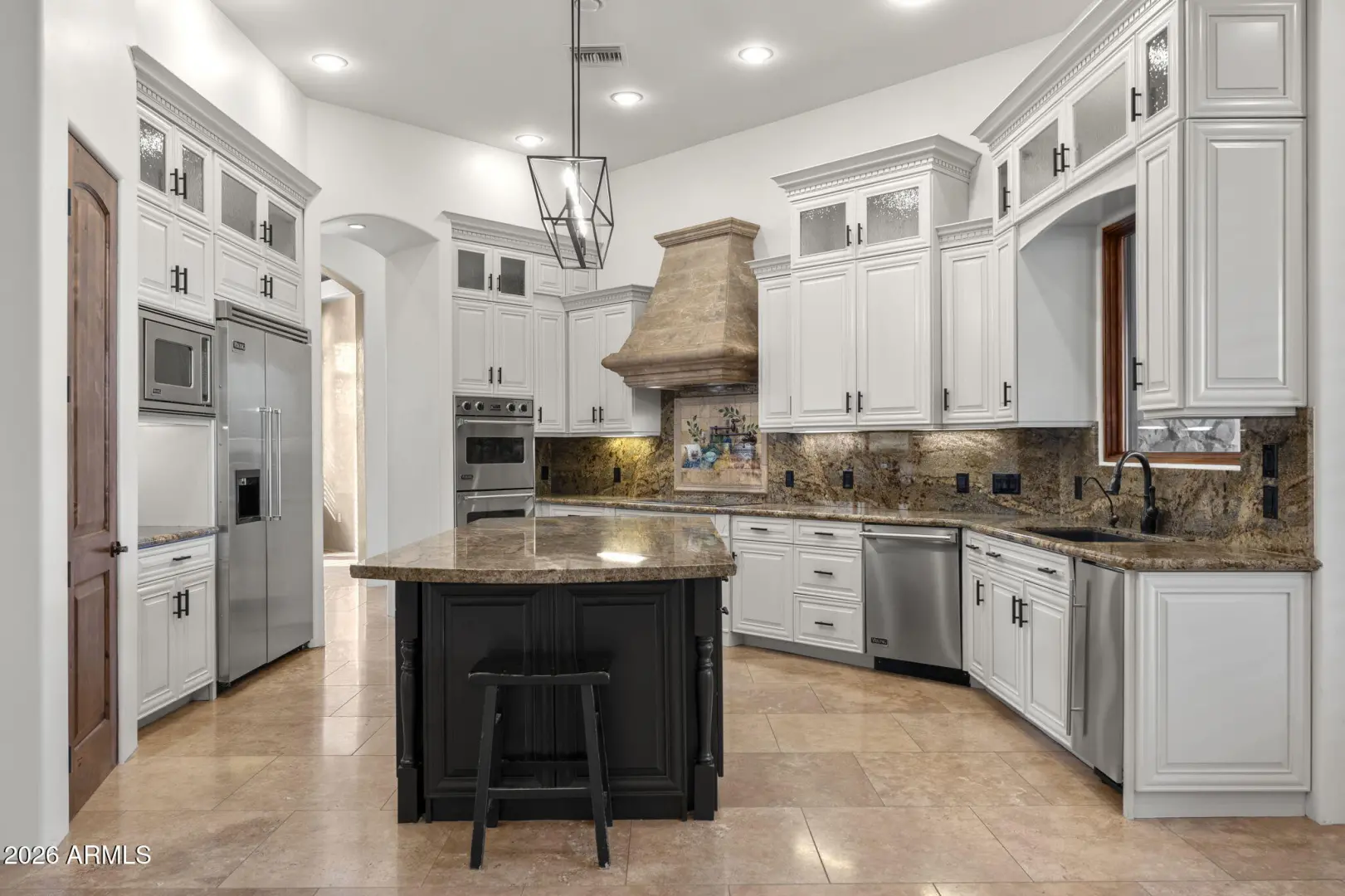 Situated at the end of a private cul-de-sac on over an acre, this custom estate zoned for horses offers six bedrooms, 4 full and 2 half baths, a finished basement, and a resort-style backyard. The 1,685-square-foot detached RV garage/workshop offers impressive ceiling height, dual roll-up doors, and a plumbed bathroom. The chef's kitchen features granite countertops, premium appliances, a generous pantry, and extensive cabinetry. The kitchen flows into the breakfast nook and living room anchored by a striking stone fireplace. The primary suite features dual vanities, a jetted soaking tub and a spacious walk-in closet. 3 additional bedrooms and 2.5 baths complete the main level. The finished basement expands your living options, with a family room, wet bar, 2 bedrooms, and a full bath.