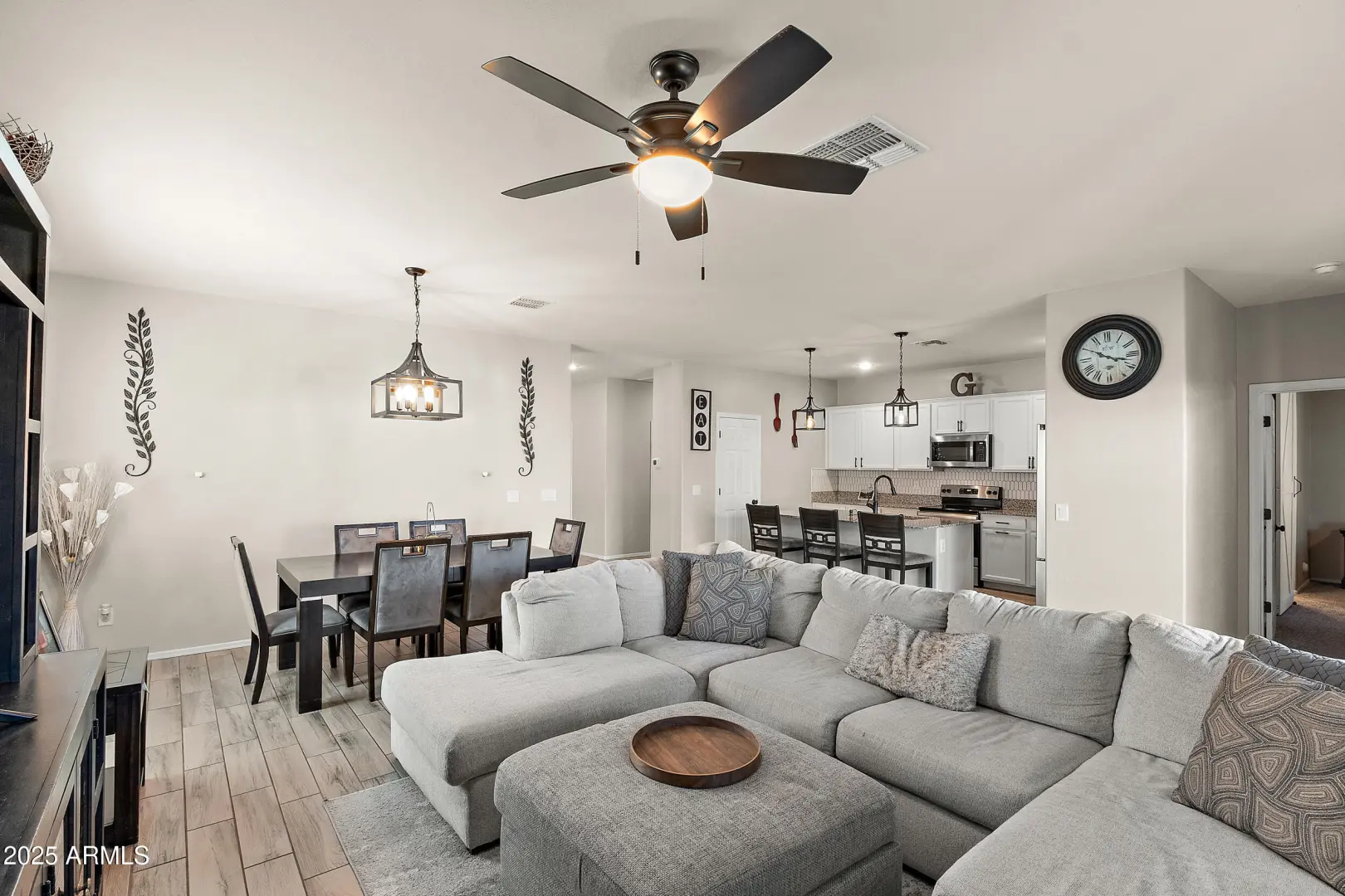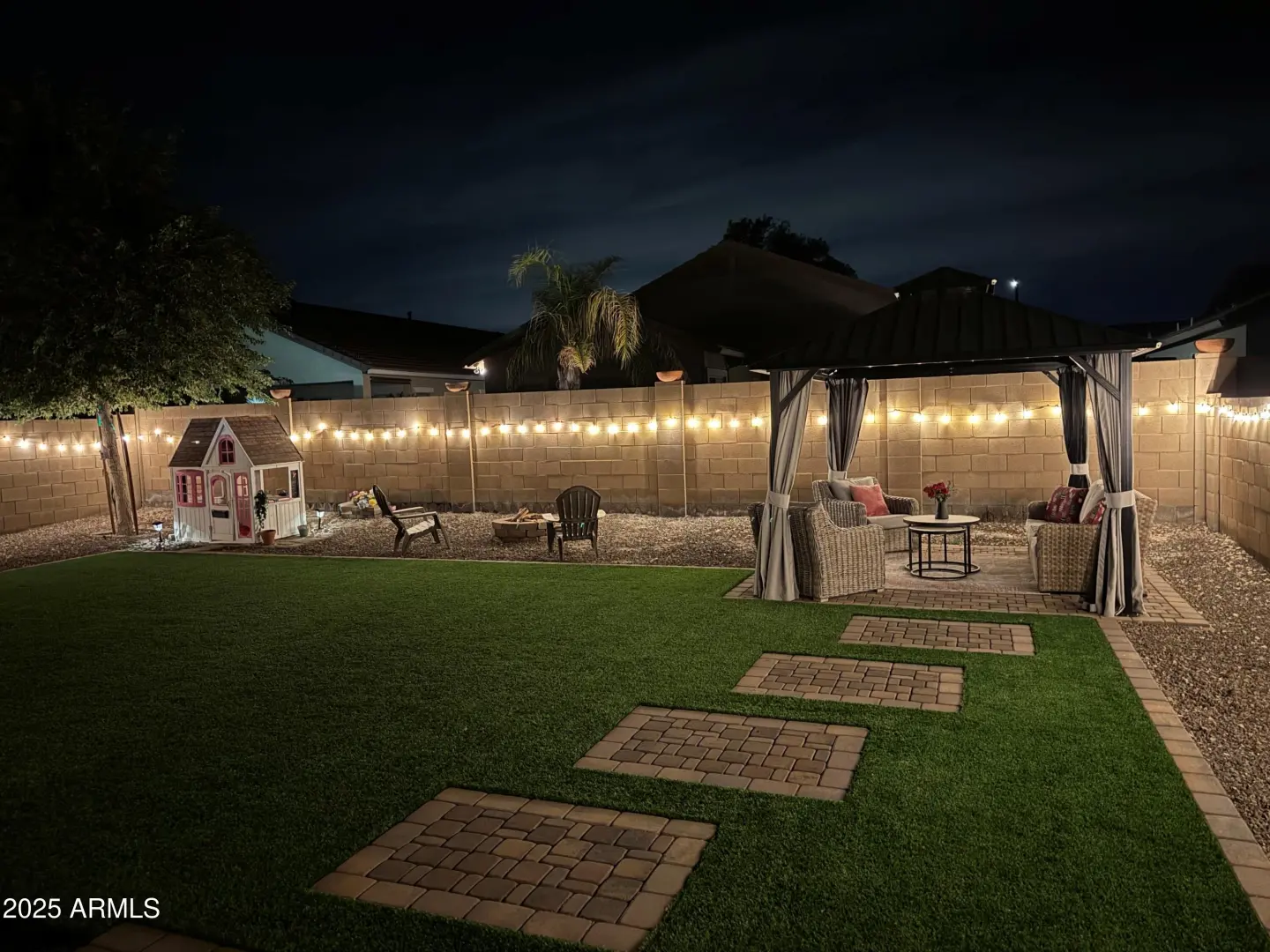 Updated 4 Bed 2 Bath + Den - 2020 Built Single Level Home Features Tile Flooring Throughout Main Living Area, 9 Ft Ceilings, Kitchen with Island, Pantry, Stainless Steel Appliances & White Cabinets Open to Living Room, Dining Area + Cozy Den with Accent Wall. Spacious Primary Suite Offers Walk-In Shower & Soaking Tub, Dual Sink Vanity and Custom Walk-In Closet. Guest Bedrooms Are Split From Primary with 2 Bedrooms Sharing Full Bathroom with Shower-Tub Combo & Dual Sink Vanity. Bedroom #4 Is Located Next to The Laundry Room Behind The 2-Car Garage. Enjoy The Beautiful Arizona Weather In The Updated Backyard with Artificial Turf, Pavers, Gazebo & Fire-Pit. Conveniently Located Near Kids Playground, Lakes with Fountains, Walking Trails, Local Attractions & Easy Access to I-10 Freeway!