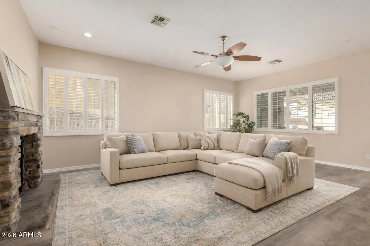 Welcome home to the highly sought-after Redwood Estates community of Chandler. This beautifully appointed home offers a bright, open floorplan and exceptional indoor-outdoor living. From the moment you step inside you are greeted with soaring ceilings, a grand staircase complemented by formal living and dining rooms ideal special gatherings or additional flex space. Plantation shutters throughout for an upscale touch. The spacious family room is perfect for entertaining and relaxing and flows seamlessly into the gourmet kitchen featuring granite counter tops, oversized granite slab island, tile backsplash, beautiful wood cabinets and stainless appliances. BONUS: home office or flex space with wood flooring is on main level.