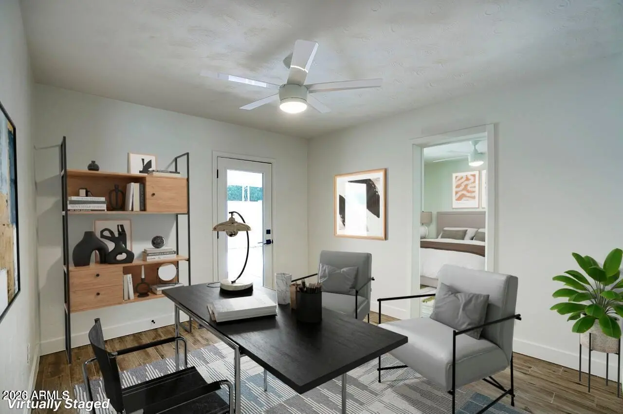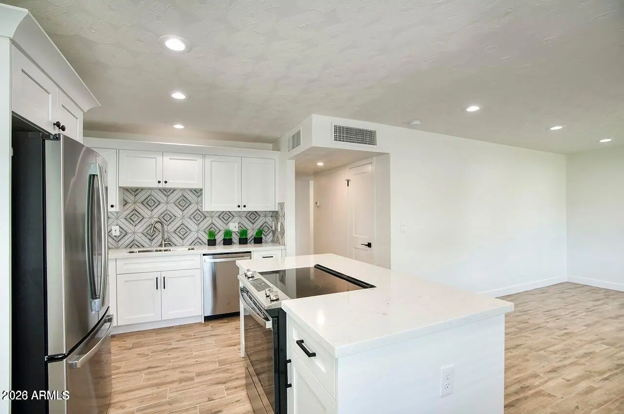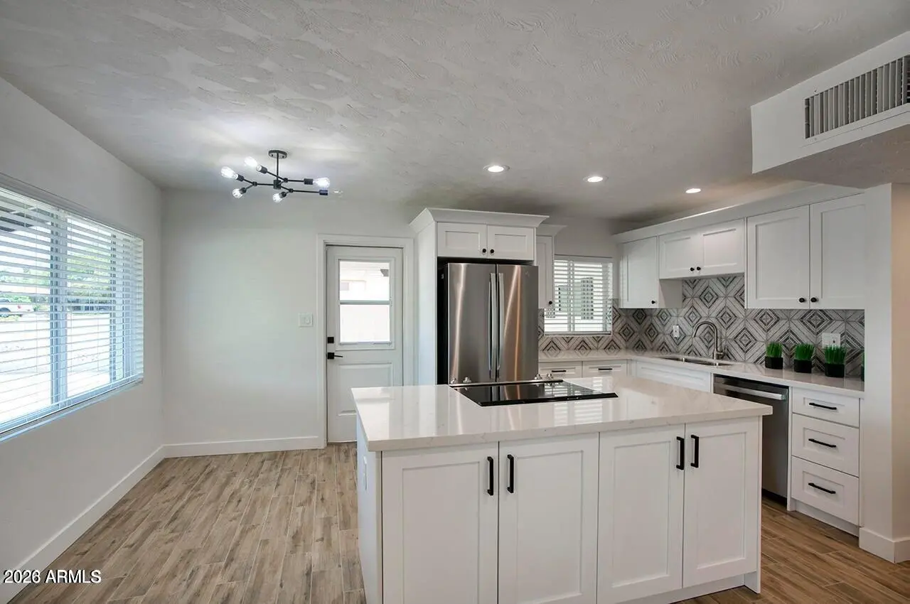 Welcome home to this charming, beautifully remodeled Caviler Campus home updated in 2023, where modern style meets everyday comfort. Wood-look tile flooring flows throughout the home, offering the warmth of hardwood & durability & ease of tile. The kitchen features, quartz countertops & sleek stainless steel appliances (refrigerator included). The versatile den can easily serve as a home office, media room or playroom - perfect for evolving lifestyle needs. The home features 3 remodeled bathrooms. The primary bathroom has two sinks & a large walk-in shower. Appreciate the North/South exposure & large covered patio. Enjoy the walk-ability to The Biltmore, the Esplanade, premier dining, shopping and more! **HVAC, WATER HEATER, WINDOWS REPLACED IN 2023. New interior paint. **