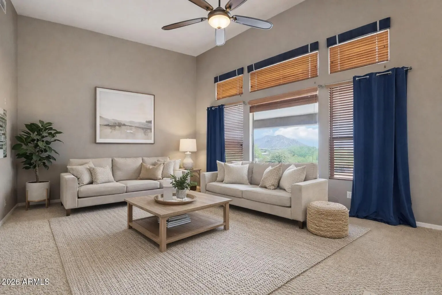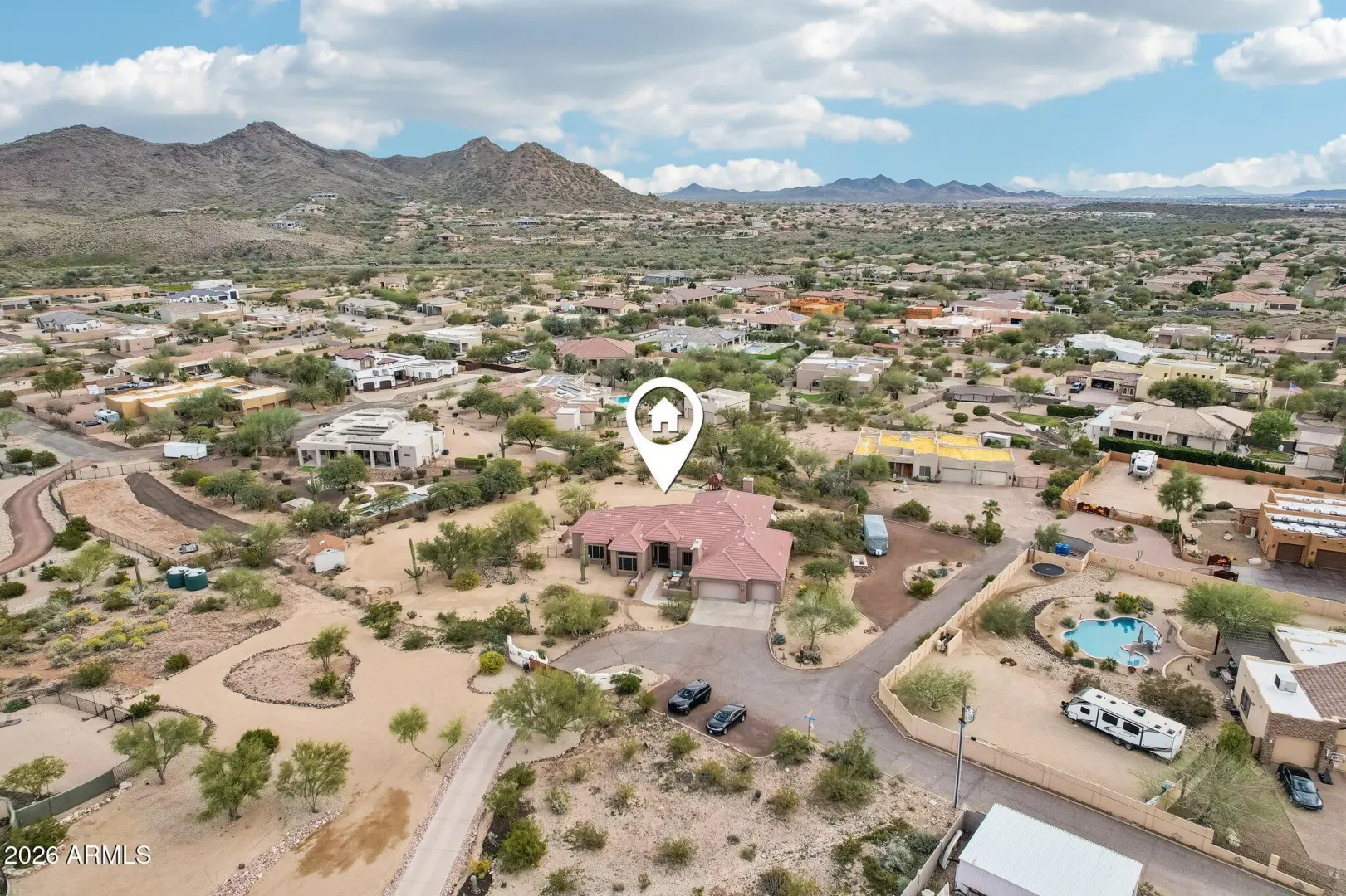Privately positioned on approximately 1.23 acres, this single-level desert estate offers an increasingly rare combination of elevation, views & privacy. Set above neighboring parcels with superior views, the home captures wide-open mountain vistas & dramatic Arizona skies. The residence features a quaint cozy front courtyard with gas fireplace, 4 bedrooms all with ensuite baths, soaring 14' ceilings, abundant natural light & a flexible floor plan designed for everyday comfort & effortless entertaining. The kitchen is equipped with gas cooking, extensive cabinetry, granite countertops & RO water filtration; located adjacent to the family room featuring a gas fireplace & wet bar making this an ideal home for entertaining. The great room & formal dining area overlook the back patio with...