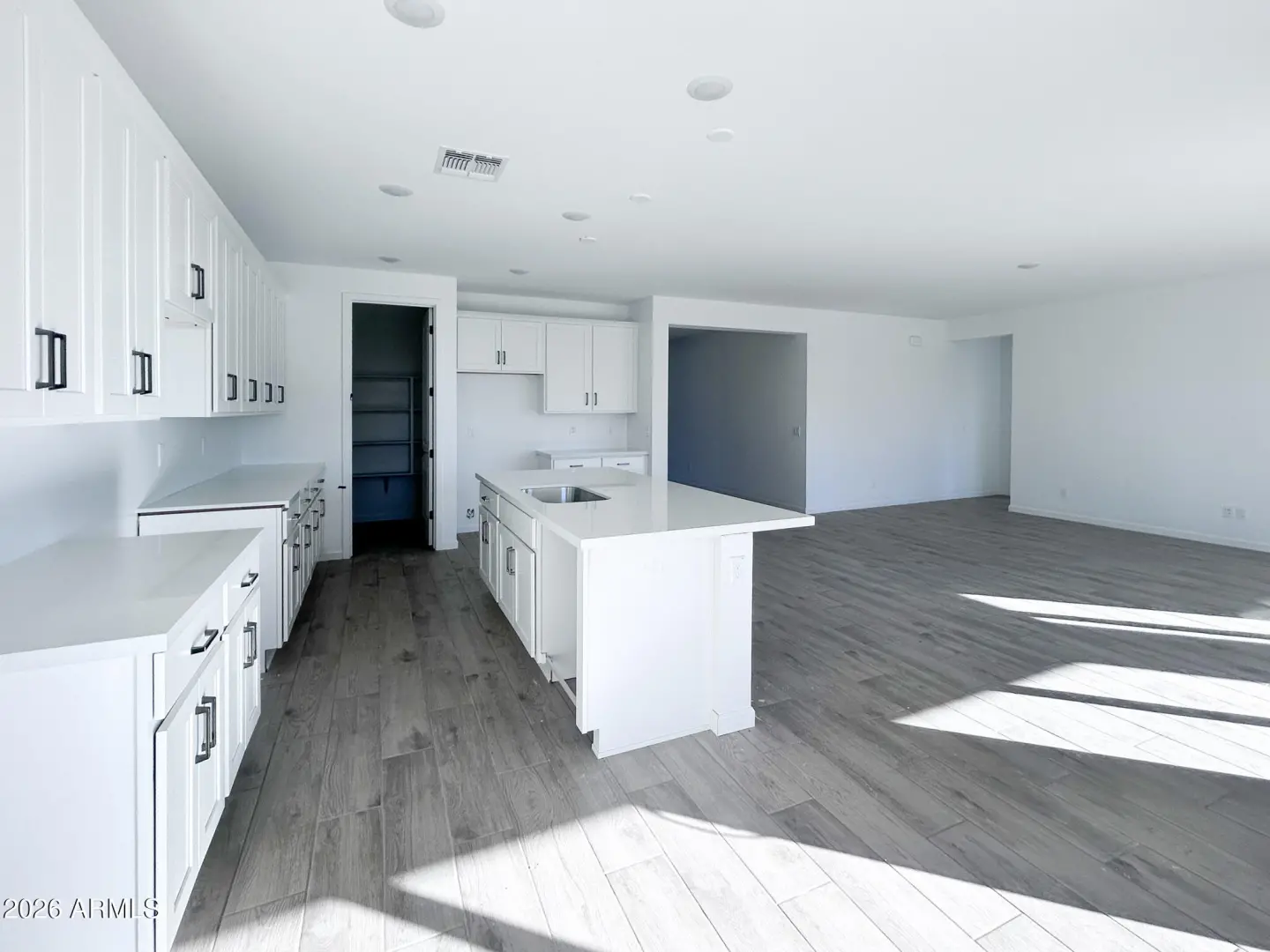 Nestled in the heart of San Tan Valley, this beautifully crafted 2,507 sq foot home Topaz home offers three bedrooms, two and a half bathrooms, a versatile den, and a spacious three-car tandem garage. Step inside to a wide hallway and welcoming foyer complete with a convenient coat closet. The open-concept design seamlessly connects the main living areas, highlighted by elegant 8-foot interior doors and a striking 4-panel sliding glass door that fills the space with natural light. At the heart of the home, the stunning kitchen features 42-inch cabinetry, quartz countertops, and a beautifully coordinated backsplash that enhances the space's modern appeal. A massive walk-in pantry adds both convenience and functionality, truly the finishing touch to this exceptional culinary space.