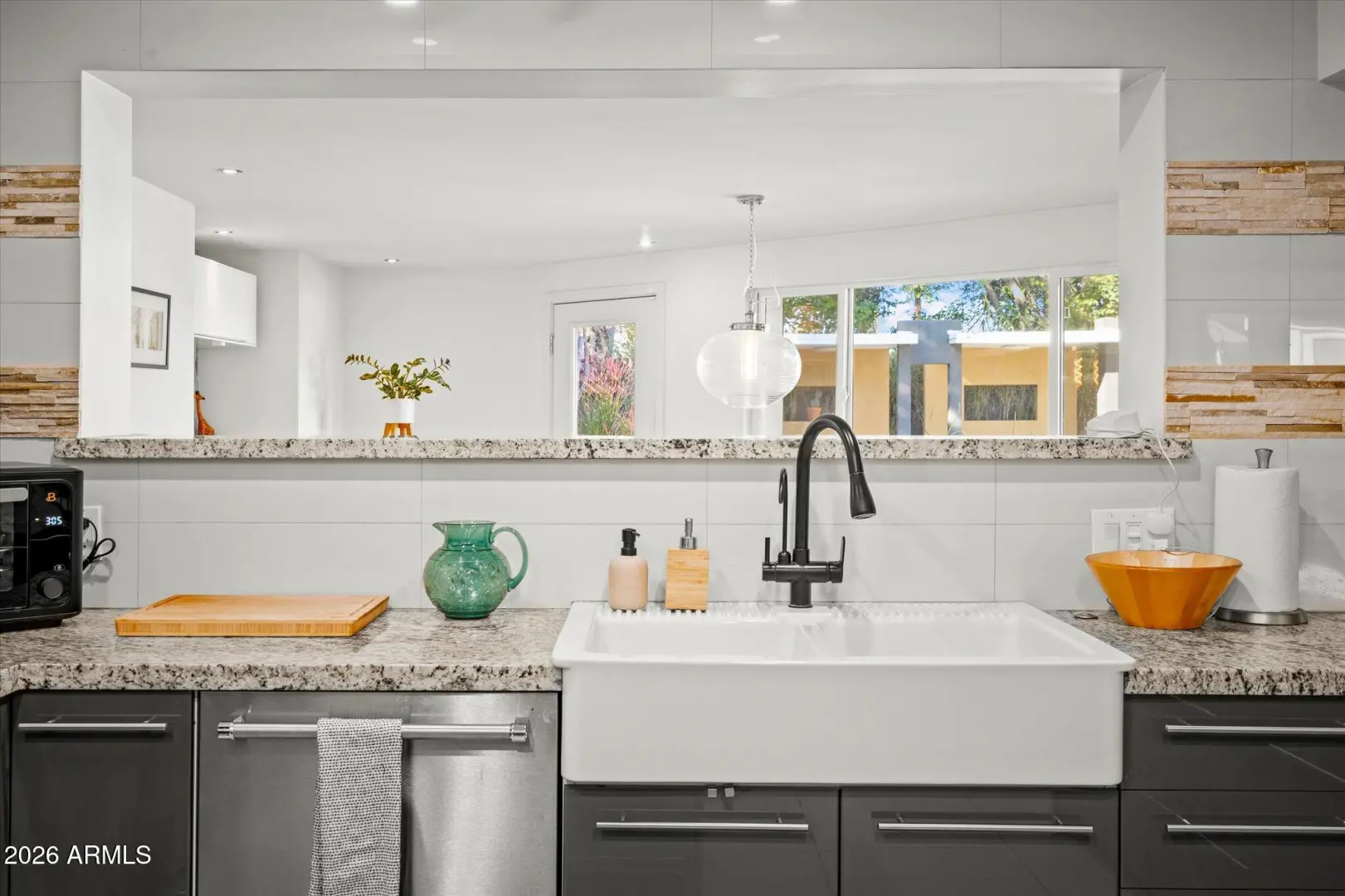 One of a kind, mid-century modern retreat with professional, artistic design blending architecture and curated detail throughout. This thoughtfully updated property features an open-concept layout, clean lines, and abundant natural light. The spacious primary suite offers soaring ceilings and a spa-inspired bath with a freestanding soaking tub and custom tile shower. Ensuite's with private patio access. Guest house provides ideal space for visitors or income potential. Enjoy seamless indoor-outdoor living with shaded courtyards, turf, and inviting entertaining areas. A built-in bar and contemporary finishes complete this move-in-ready gem.