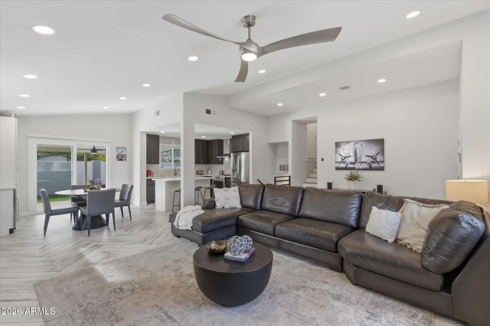 Experience modern warmth in this stunning, remodeled home in the popular Sheaborhood. A charming front courtyard entry welcomes you into an open floor plan with vaulted ceilings. Tons of natural light creates an airy, inviting feel, anchored by a stylish fireplace. The remodeled kitchen shines with high-end cabinetry, quartz countertops, stainless steel appliances, and a floor-to-ceiling pantry cabinet for exceptional storage. Thoughtful touches continue throughout with recessed lighting, modern ceiling fans, and beautiful finishes at every turn. Downstairs, enjoy a spacious recreation room for movie nights, a home gym, or bonus space. An impressive list of updates includes a newer HVAC and roof, as well as updated baths, tile flooring, and more.