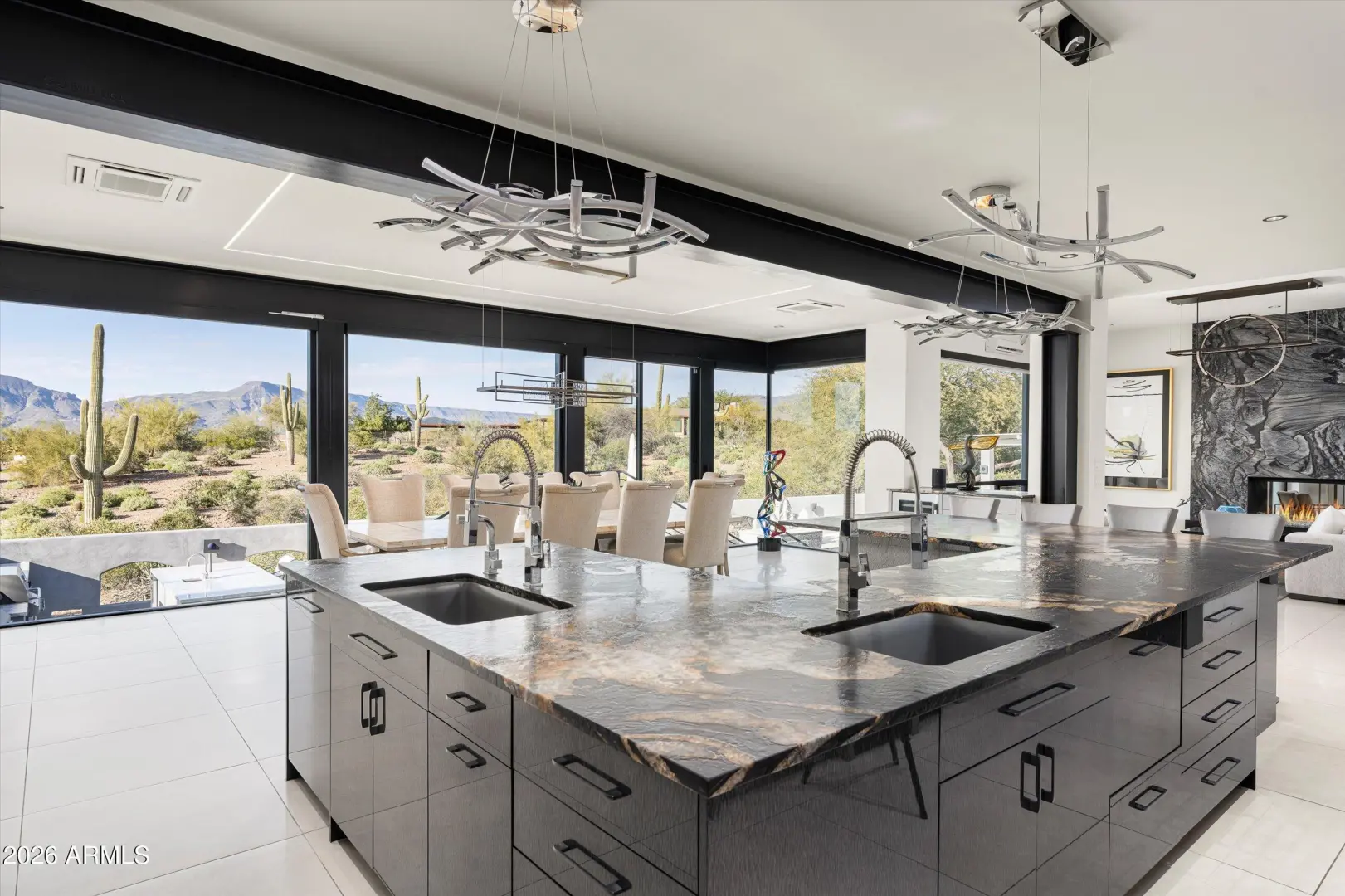 A striking contemporary desert estate set on 2.1 acres with panoramic mountain views, in a quiet & private pocket of Cave Creek on a desirable north south lot. Completely reimagined & expanded in 2020, this residence showcases modern architecture defined by clean lines, expansive glass, & a seamless indoor outdoor connection that makes you feel immersed in the surrounding desert. Thoughtfully curated finishes, emphasizing quality materials & custom detailing. The home has 4 ensuite bedrooms, including 2 primary suites, with the main retreat opening to a private view deck with pool access. Resort style backyard with kitchen & dining, fire pit, a statement pool & lounging gazebo, & existing equestrian amenities complete the property. Minutes from dining, art galleries, shopping, & hiking.