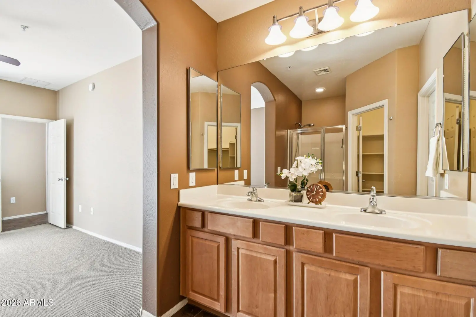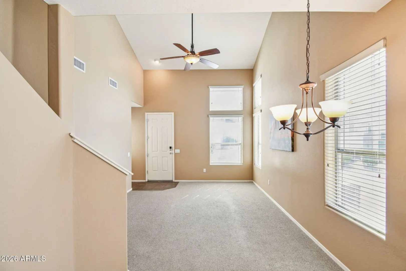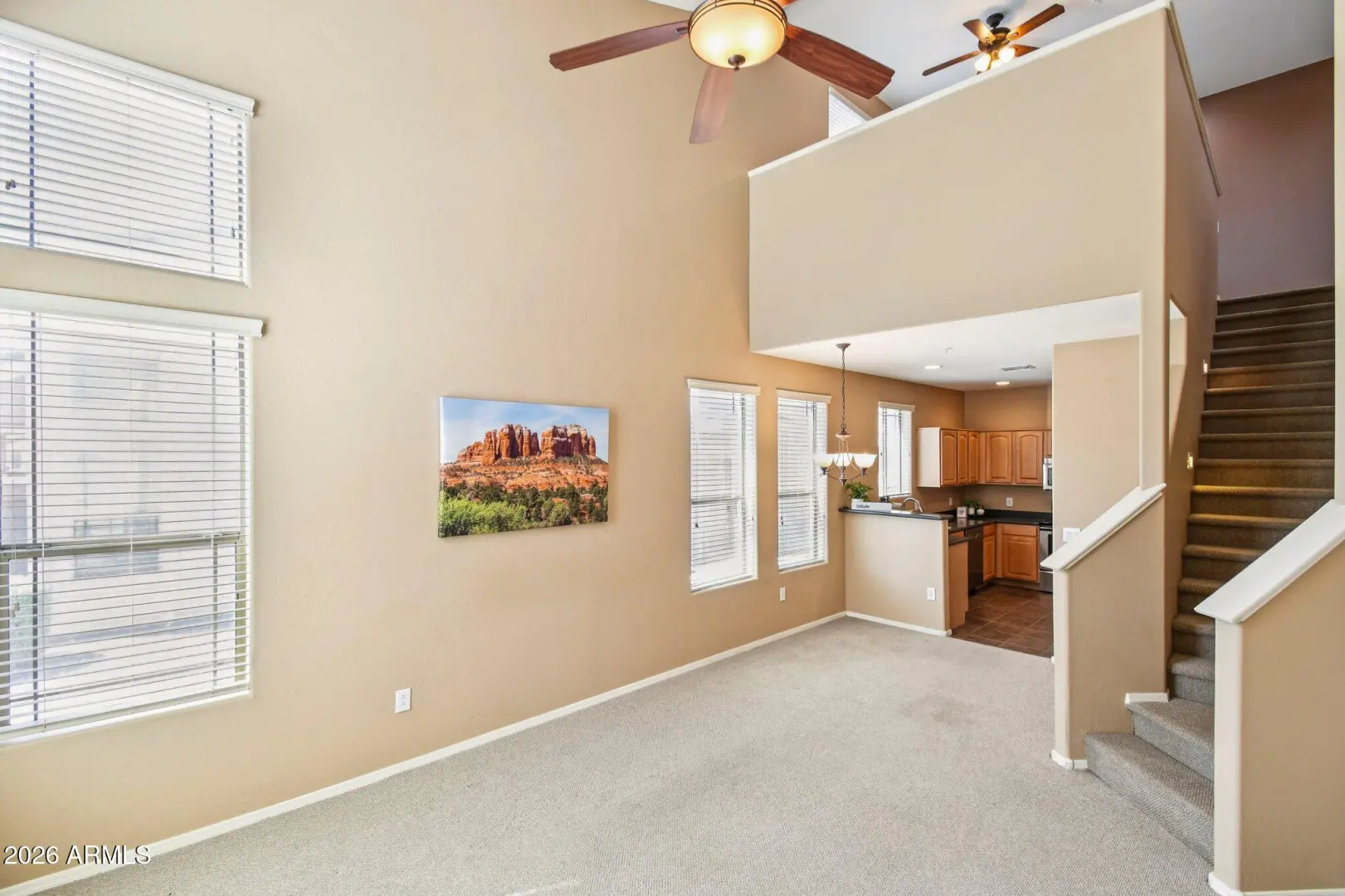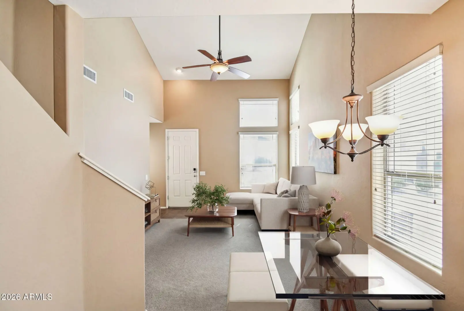Welcome to the Villages, where residents enjoy lock and leave living in private gated community. Water, sewer, trash, roof replacement, exterior painting & maintenance, landscaping are included in HOA. Plus a private gym, pool & spa for residents, along w/access to all Anthem parkside amenities AND lower insurance rates (only a wall-to-wall policy needed). This desirable 2 bedroom plus loft, 2.5 bath end-unit offers natural light, comfort and convenience. Primary bedroom downstairs with patio access, a walk-in closet and en-suite bath. 2-car garage (full-size truck fits), walk-in pantry, pull-out trash & shelves and downstairs half bath for guests. Enjoy newer A/C! Ideally located near shopping, medical & dining. This home is the perfect blend of low-maintenance living & everyday comfort.