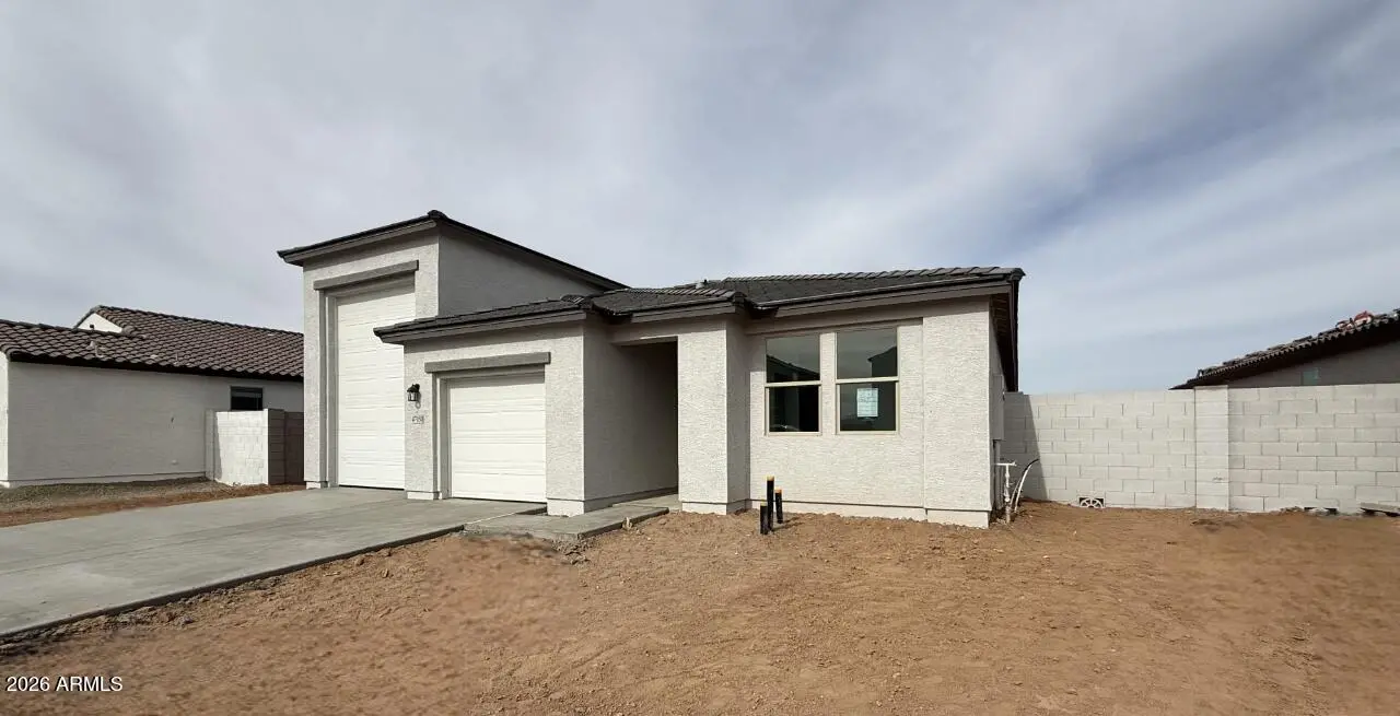 Welcome to your Dream Single-Story RV Garage Home! This Opal RV Garage brand-new construction home plan boasts Arizona's classic Modern Desert architecture in the front, blending seamlessly with its surroundings. With 2,124 square feet of designer-curated living space, this gem offers a place of casual comforts and airy style. The spacious open-concept floor plan has four bedrooms, a large den, and 3 bathrooms. You'll love the magnificent four-panel center siding glass door, bathing the area in sunlight, and the Lakewood Vista 7 x 22 Plank Tile wood-look floors throughout the main living areas, offering elegance and easy maintenance. A chef's delight, the kitchen delivers in every way with White Ivory Quartz countertops, a stainless steel single bowl under-mount sink, a