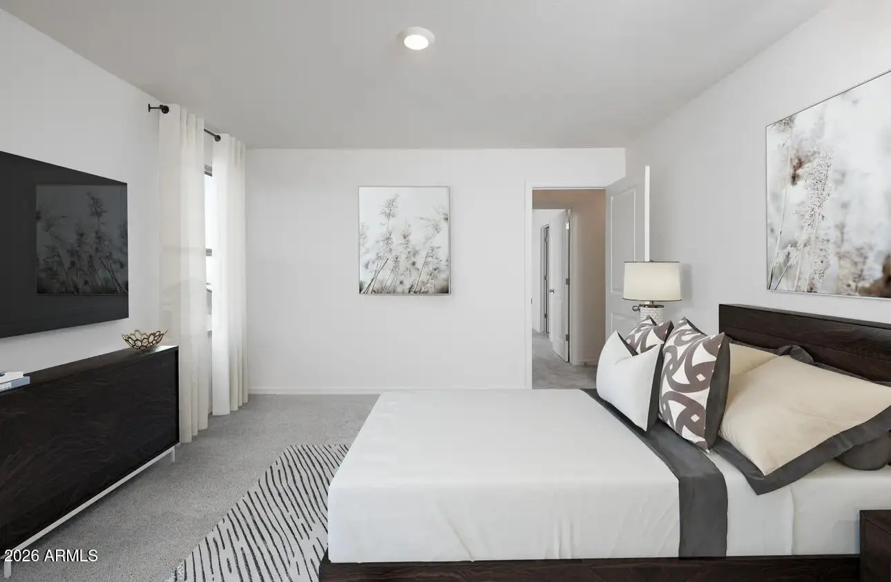 Beautiful NEW Home in PRIME location, close to major cities. Ready Mid June 2026. Featuring countless upgrades such as White Shaker Cabinetry, Granite Countertops, Stainless steel appliance package, and 9' ceilings throughout! Spacious walk - in closet in owners suite. Energy - efficient features including dual pane windows, WIFI programmable thermostats and insulated garage doors. Front yard landscaping package, covered patio and porch. Neighborhood parks, playgrounds, covered picnic tables and greenbelts throughout. Spectacular mountain views! Conveniently located near the 347 and I-10. Highly rated schools, shopping, and dining! Just 5 miles from Fry's, Walmart, and CVS! 10 minute drive from all shopping, dining, and recreation.