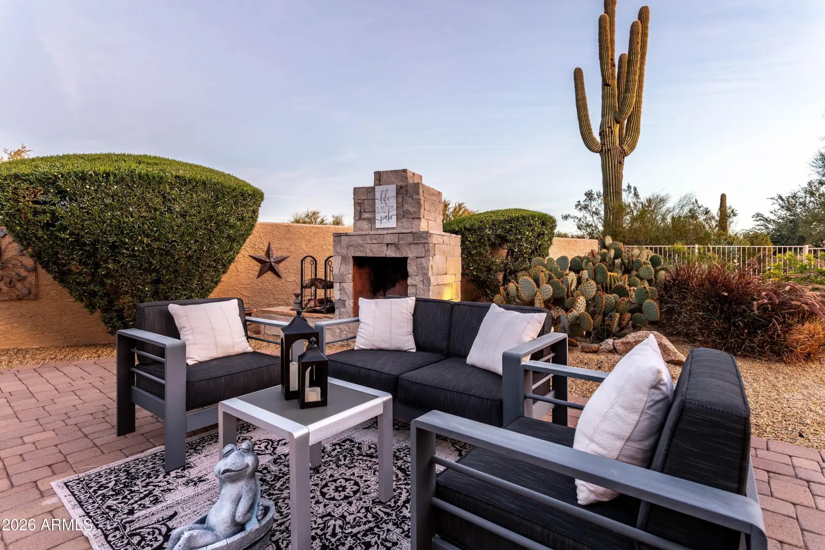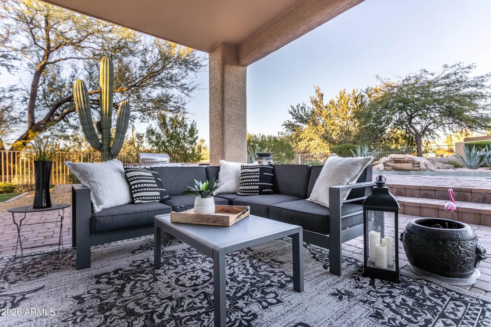 Reimagined Mediterranean-inspired custom home featuring 5 bedrooms, 3 baths, a main-floor office, and a 3 car garage. Set on over half an acre, the property offers flexibility to add an ADU for guests, a workshop, or multigenerational living. The newly redesigned chef's kitchen & bar anchor the open-concept layout with custom cabinetry, sleek fixtures, & premium Café appliances, perfect for entertaining and everyday living. Enjoy two private view decks capturing sweeping sunrises and sunsets. The resort-style backyard oasis is designed for year-round enjoyment & showcases a sparkling pool, putting green, built-in BBQ, fire pit, fruit trees, & an expansive covered patio complete with a wine bar. Located just minutes from the Cave Creek strip in the gated Sonoran Vista of Tatum Ranch.