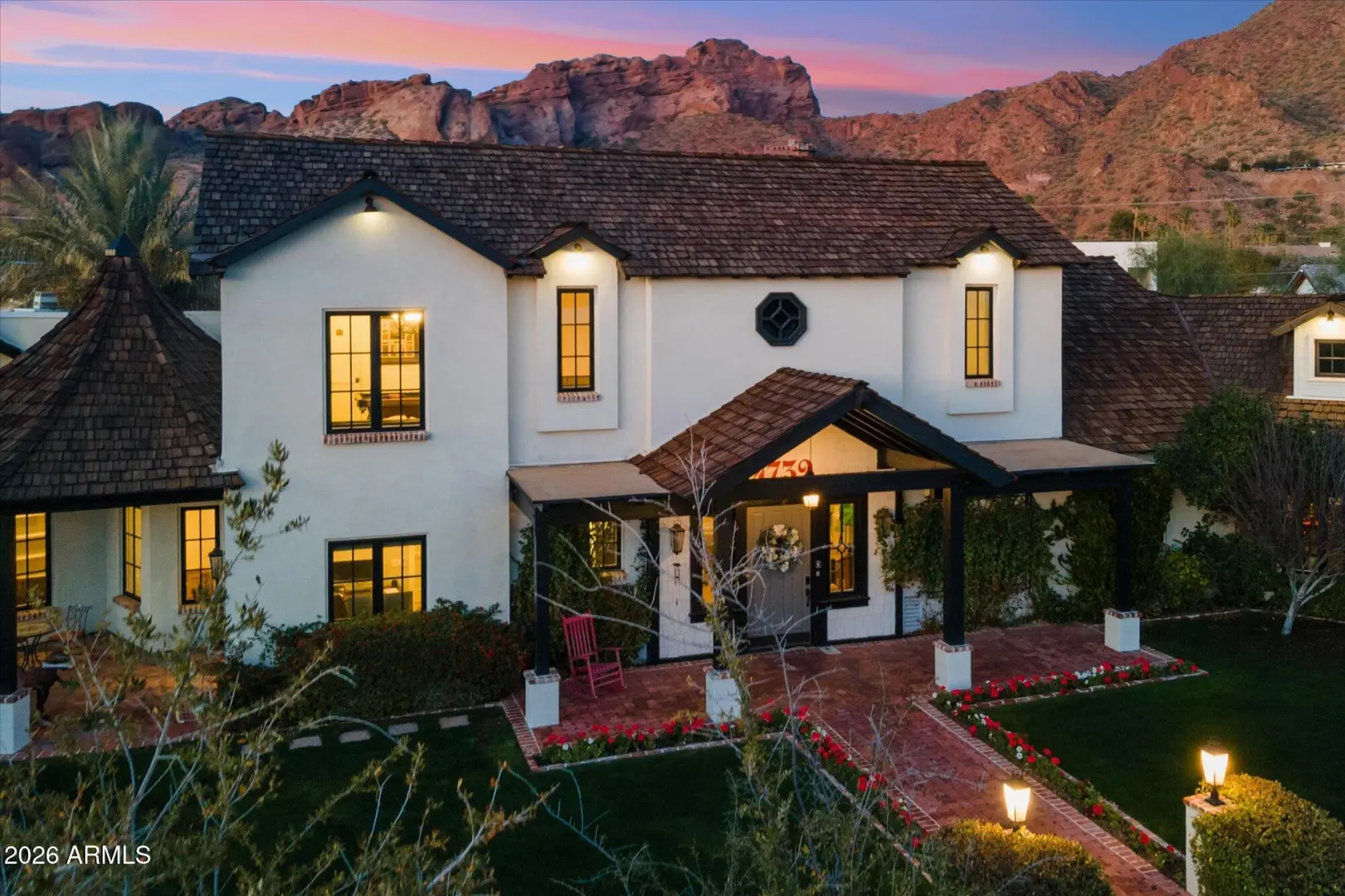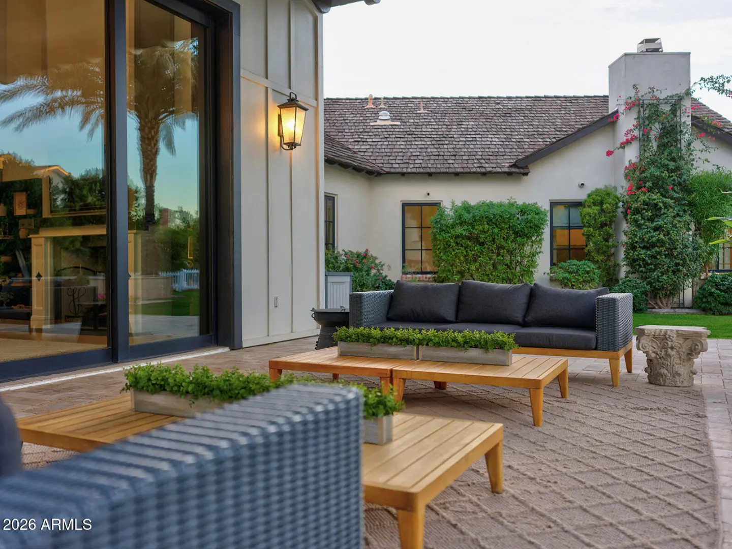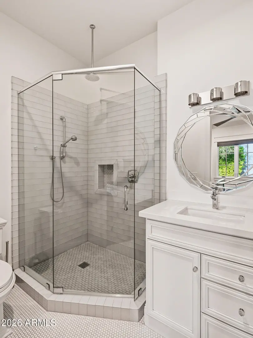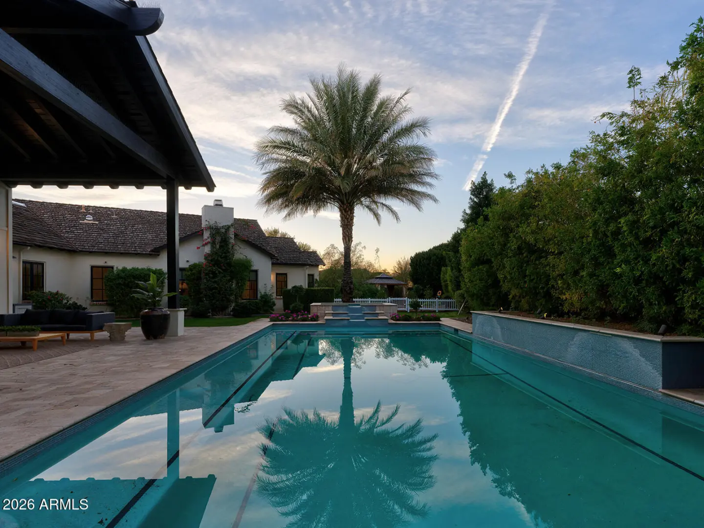 The home we experience as The Garden, rests quietly at the end of a cul-de-sac in one of Arcadia's most tightly held pockets. This estate feels both grounded and elevated, private in its placement, yet visually connected to Camelback Mountain, which rises as a constant backdrop. The approach is substantial, and intentional. Inside, volume and warmth coexist as soaring ceilings wrapped in tongue-and-groove detailing create rhythm, texture, and a sense of quiet drama. Walls of pocketing glass dissolve the boundary between indoors and out, pulling natural light deep into the home and framing the resort-like grounds beyond. The kitchen is designed as the center of gravity, less a room, more a gathering point. Custom cabinetry, a fabulous chiseled-edge granite island, and professional