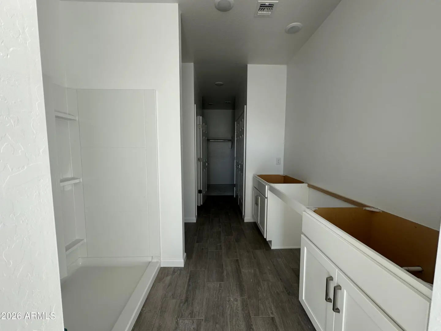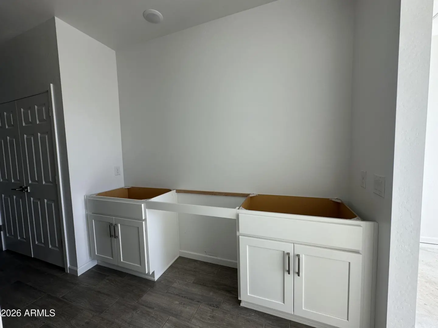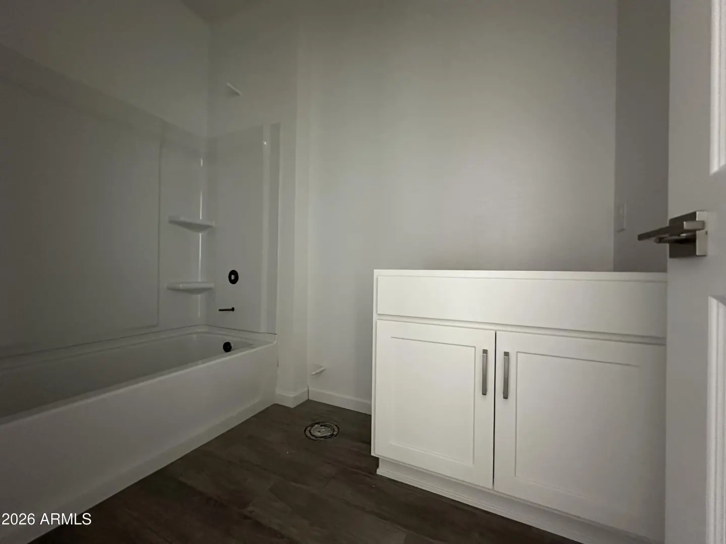 This home is ideal for first-time buyers, the Iris floor plan offers 1,797 sq ft of living space, 4 bedrooms, 2 bathrooms, a 2-car garage, and a large backyard. The kitchen features 42''white cabinets, beautiful Ivory White quartz countertops, a Artic White 1x3 chevron-patterned backsplash, and satin nickel hardware to tie it all together. This Iris comes fully equipped with stainless steel appliances, including a gas range, microwave, dishwasher, fridge, plus a white washer and dryer. The designer-curated finishes are completed with 7 x 22 wood-look tile floors in the main living areas and plush carpeting in the bedrooms and den. Getting ready is easy in the primary suite, which features dual sinks, a shower with a glass door, and a large walk-in closet. This Iris floor plan als