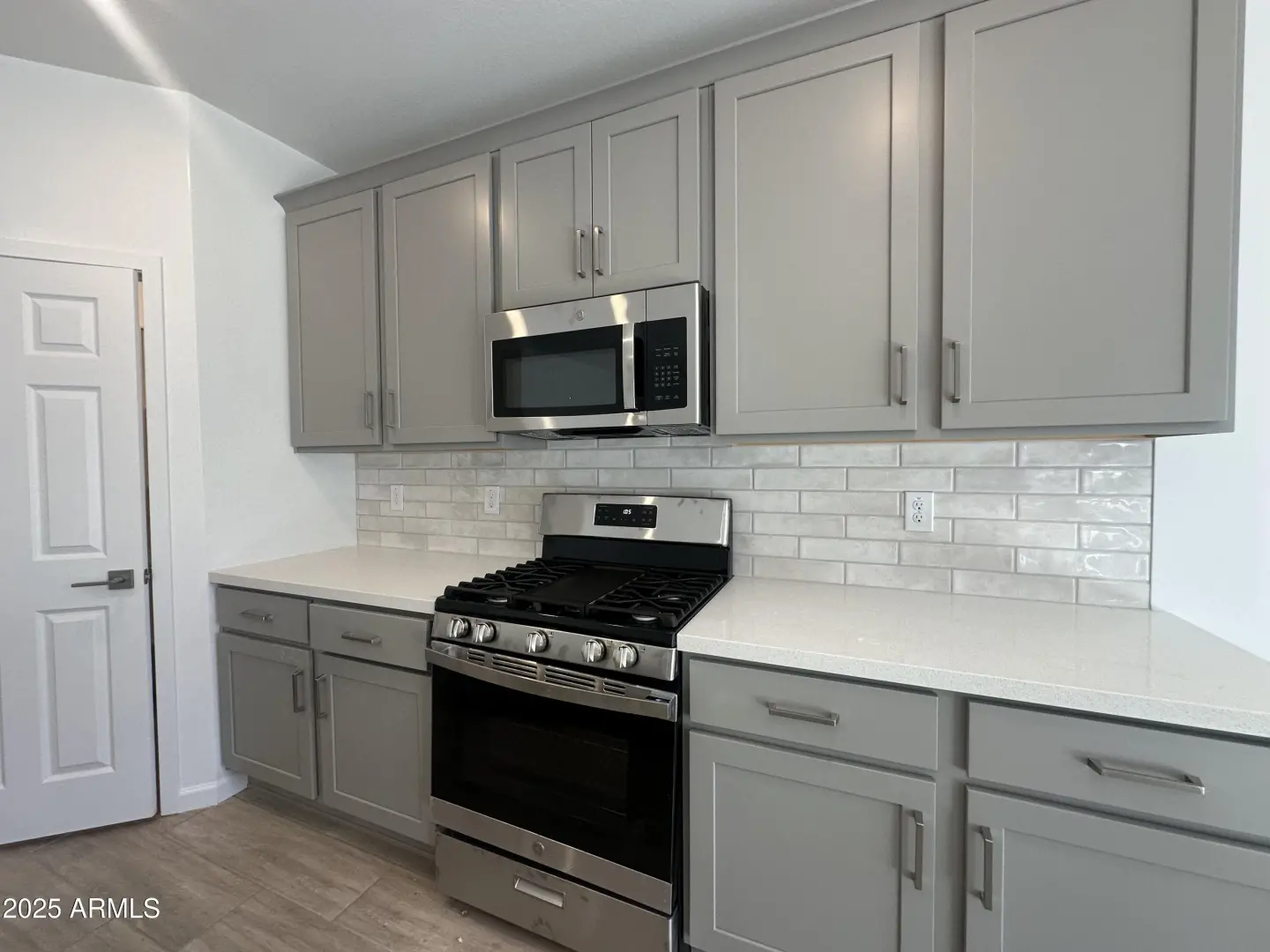 The popular Iris floor plan is back at the Amarillo Creek community. This gorgeous home offers 1,797 sq ft of living space. The home features 4 bedrooms, 2 bathrooms, and a 2 Car Garage with plenty of storage throughout. The kitchen is a show stopper with 42'' upper gray shaker cabinets, White Sand quartz countertops, satin nickel hardware, a textured Arnold White 4x16 backsplash, and a spacious pantry, catering to all your entertainment needs. The designer-curated finishes are completed with Lakewood Vista 7''x 22'' wood-look tile floors in the main living areas and plush carpeting in the bedrooms. This home also comes fully equipped with stainless steel appliances, including an electric range with gas hookup, microwave, dishwasher, and fridge, plus the appliance suite