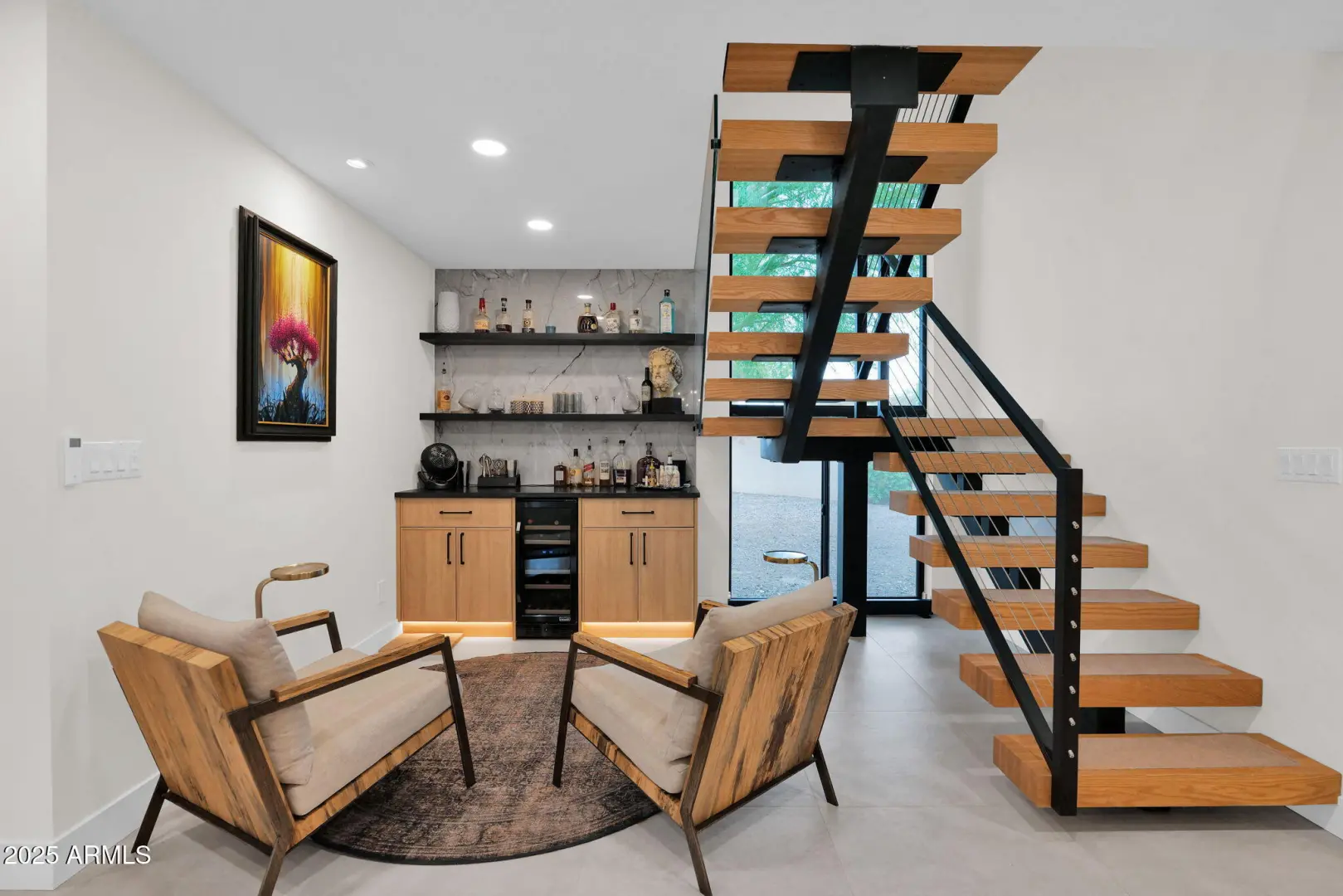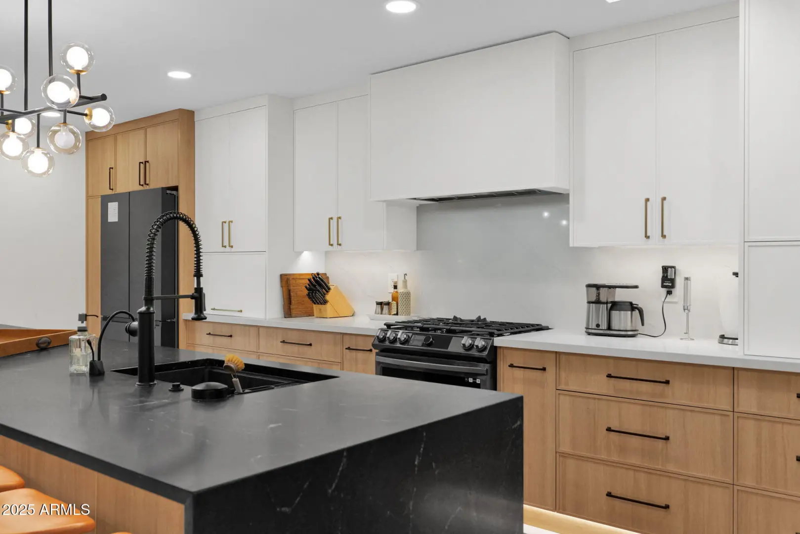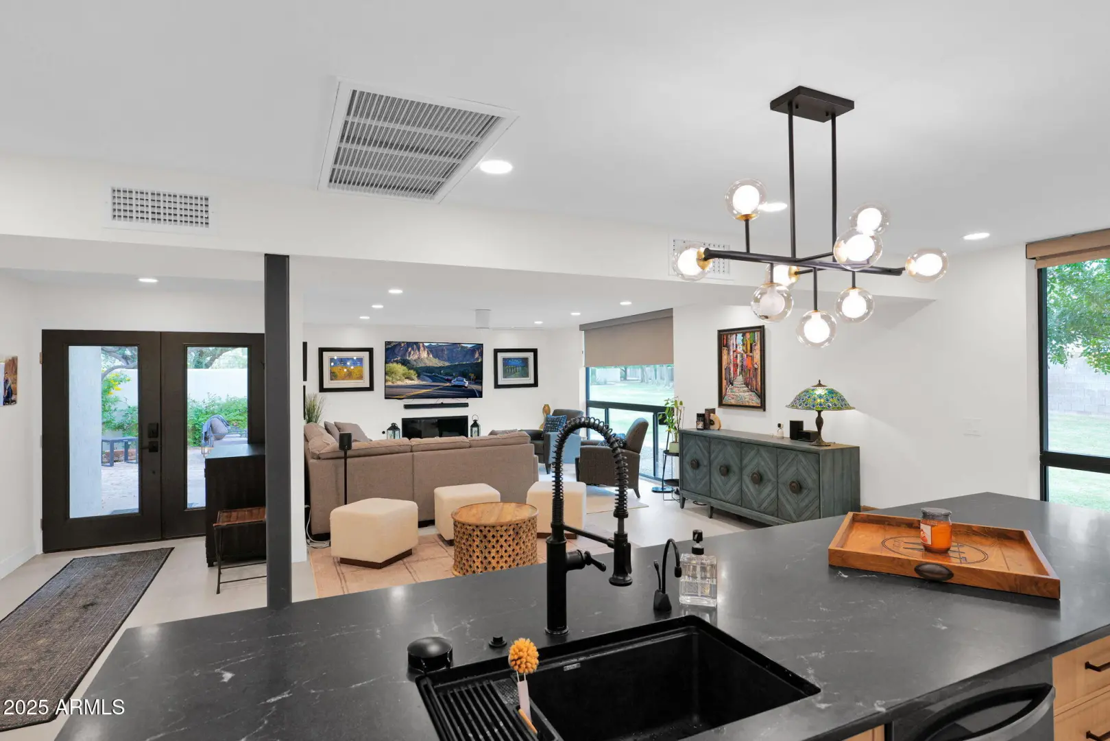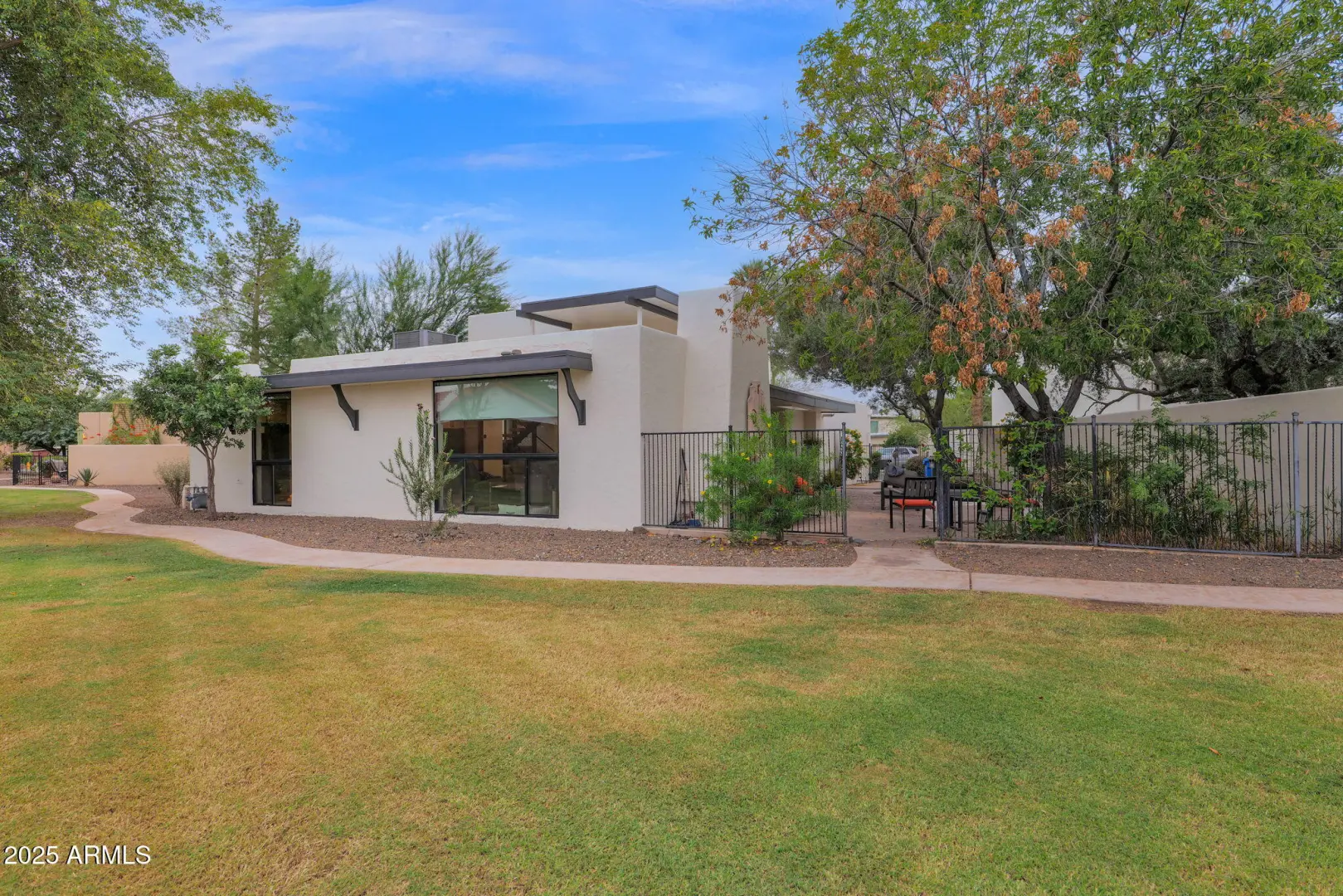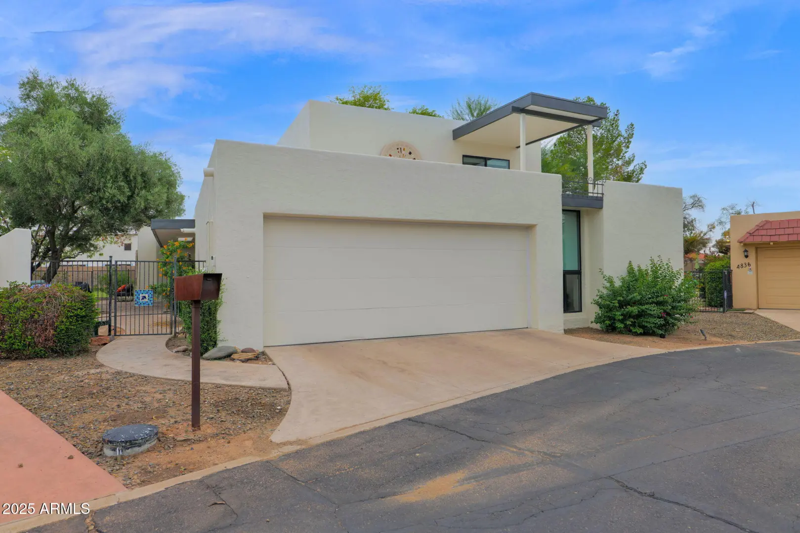 Completely Renovated Mid-Century Modern Townhome in Coveted Arcadia Green The owners have spared no expense updating this stunning detached townhome in Arcadia Green, a sought-after enclave of midcentury modern homes in Lower Arcadia. Offering over 2,500 sq. ft. of thoughtfully redesigned living space, this residence sits at the curve of a quiet cul-de-sac, backing to an expansive community greenbelt with sweeping Camelback Mountain views. Inside, every detail has been meticulously updated including electrical, plumbing, kitchen, and baths blending timeless modern design with high-end functionality. The chef's kitchen is a true showpiece, featuring two refrigerators, a gas range, granite waterfall island with seating for seven, quartz backsplash, and modern shaker flat-panel cabinetry-