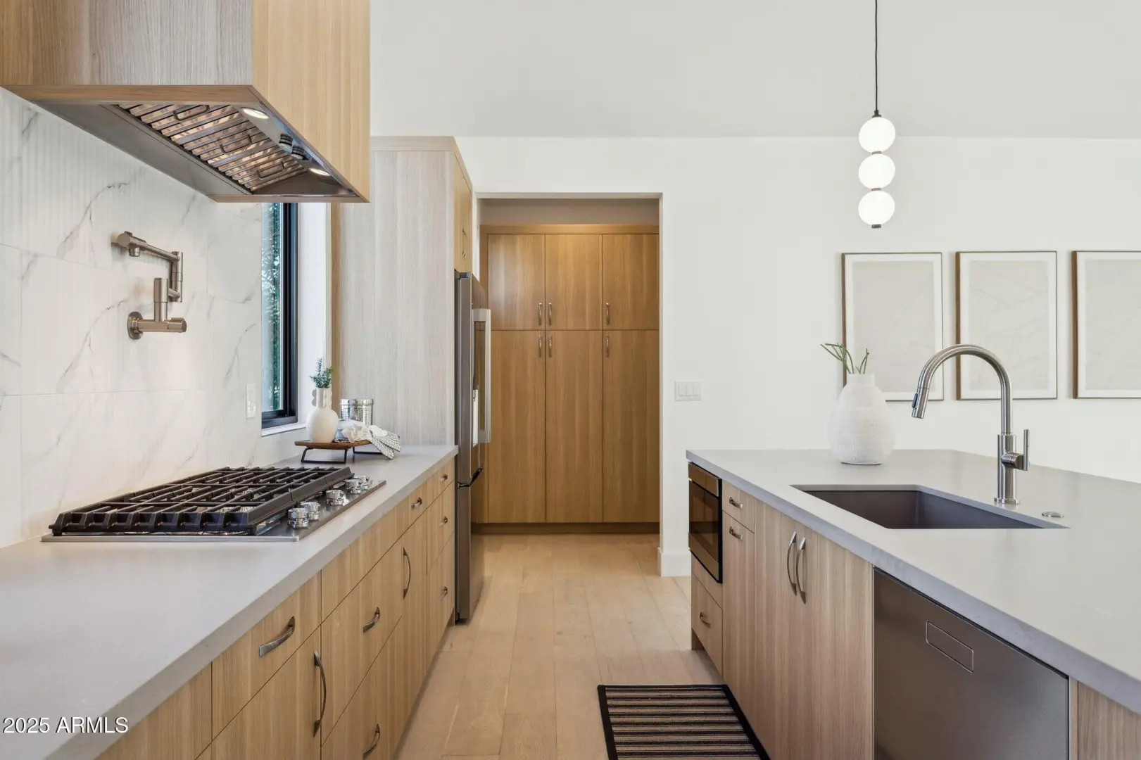 Just completed in Casa Azul. Discover a bold blend of high-performance design, intuitive technology, and modern luxury, all wrapped into this stunning property. This 4-bedroom, 3.5-bathroom spanning 2,696 square feet, is crafted for those who crave style with substance. Built by Blue Sky Homes, named Arizona's Top Sustainable Builder by Green Living Magazine, this residence offers premium finishes, cutting-edge automation, and exceptional energy efficiency. Step inside a thoughtfully designed layout with vaulted ceilings, an open yet functional flow, and an abundance of natural light. The open-concept living space flows seamlessly with a chef's kitchen featuring premium Energy Star appliances,