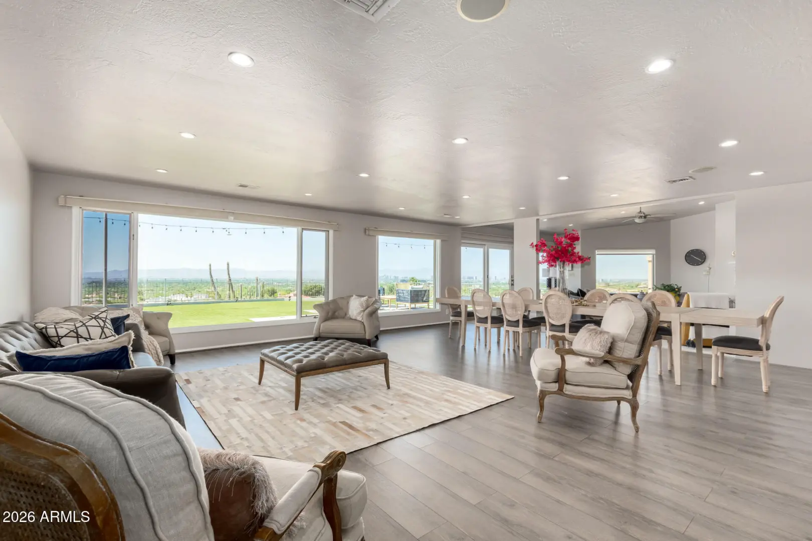 Views for miles! Enjoy breathtaking panoramic views in every direction. Camelback Mountain to the east, Sky Harbor to the south with planes taking off and landing, and downtown city lights to the west. This hillside home offers views unlike anything you've seen. Featuring 4 bedrooms and 5.5 baths, including a full pool bath. Relax in the pool overlooking the entire city or unwind on the patio where you can enjoy both sunrise and sunset. Rarely does a hillside property offer such a flat pad, easy driveway, and a full sport court with lighting for day or night play. Private primary suite occupies its own level and showcases some of the home's best views, even from the primary shower. Three generously sized secondary bedrooms, two en-suite. 4 car garage & endless options to re-imagine this