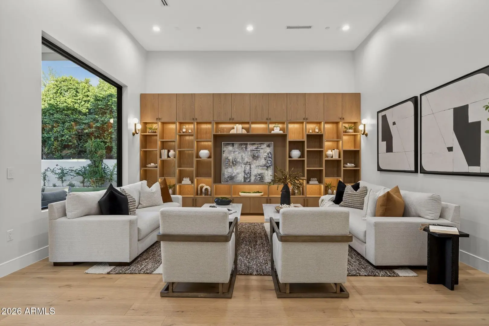 Introducing Solara, a brand-new luxury residence in Paradise Valley by UR Development. This 6,643 sq ft home features 6 beds, 6 baths, and unmatched design—crafted entirely in-house for superior quality. The grand great room showcases marble floors and a striking multi-sided fireplace. A chef's kitchen anchors the space with a bold black wood island, Black Leather Quartz, and Calacatta Waves Quartz countertops. Enjoy seamless indoor-outdoor living, a private front-yard pool, firepit, and a stylish bar with wine cellar. Solara is more than a home—it's a refined statement of luxury in one of Arizona's most exclusive neighborhoods.