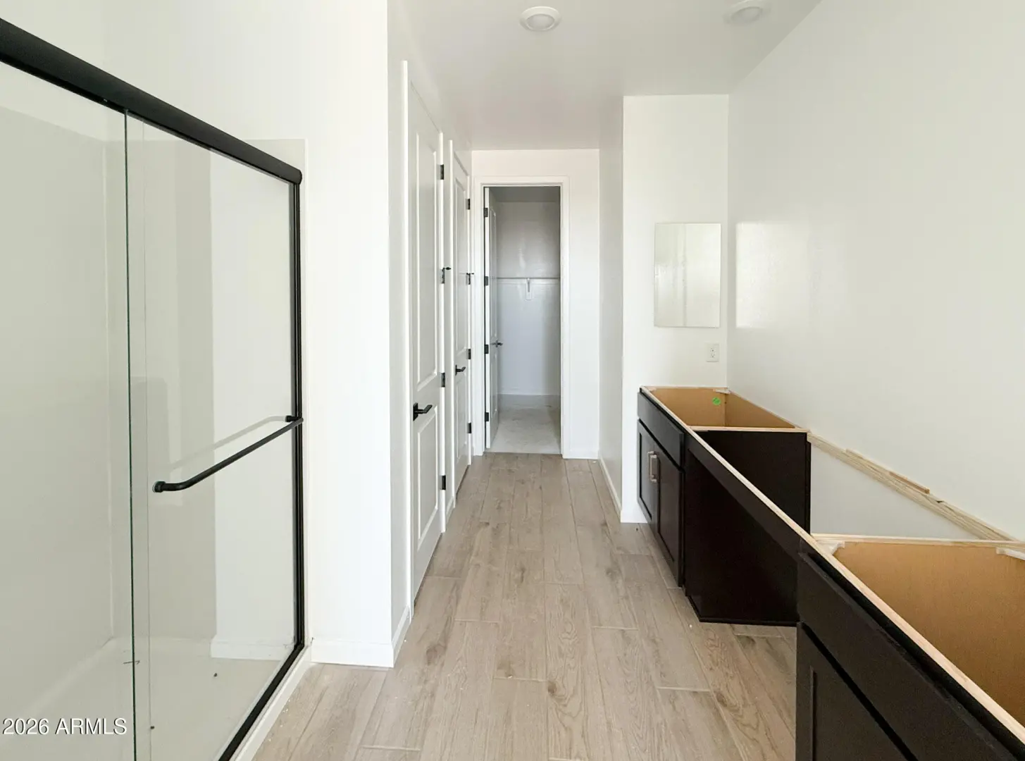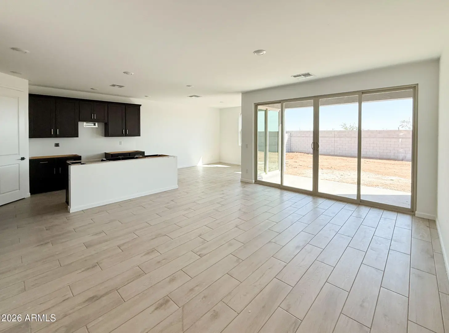 Welcome to the Larkspur at Skyline! This 1,950 sq ft single-story home features 3 bedrooms, 2 bathrooms, a flexible den, and a 2-car garage with a stylish Desert Modern-style exterior. The Oxford Collection offers a modern look with espresso cabinetry, quartz countertops, gold cabinet pulls, and wood-look tile in all main areas. A 12' sliding glass door brings in natural light and opens to the backyard for seamless indoor-outdoor living. Enjoy 8' interior doors, blinds, stainless steel appliances, refrigerator, washer, dryer, and a soft water loop. Located in Skyline with amenities including a pool, splash pad, pickleball, basketball, volleyball, walking trails, fitness center, tot lots, and a community clubhouse with kitchen. Enjoy the good life!