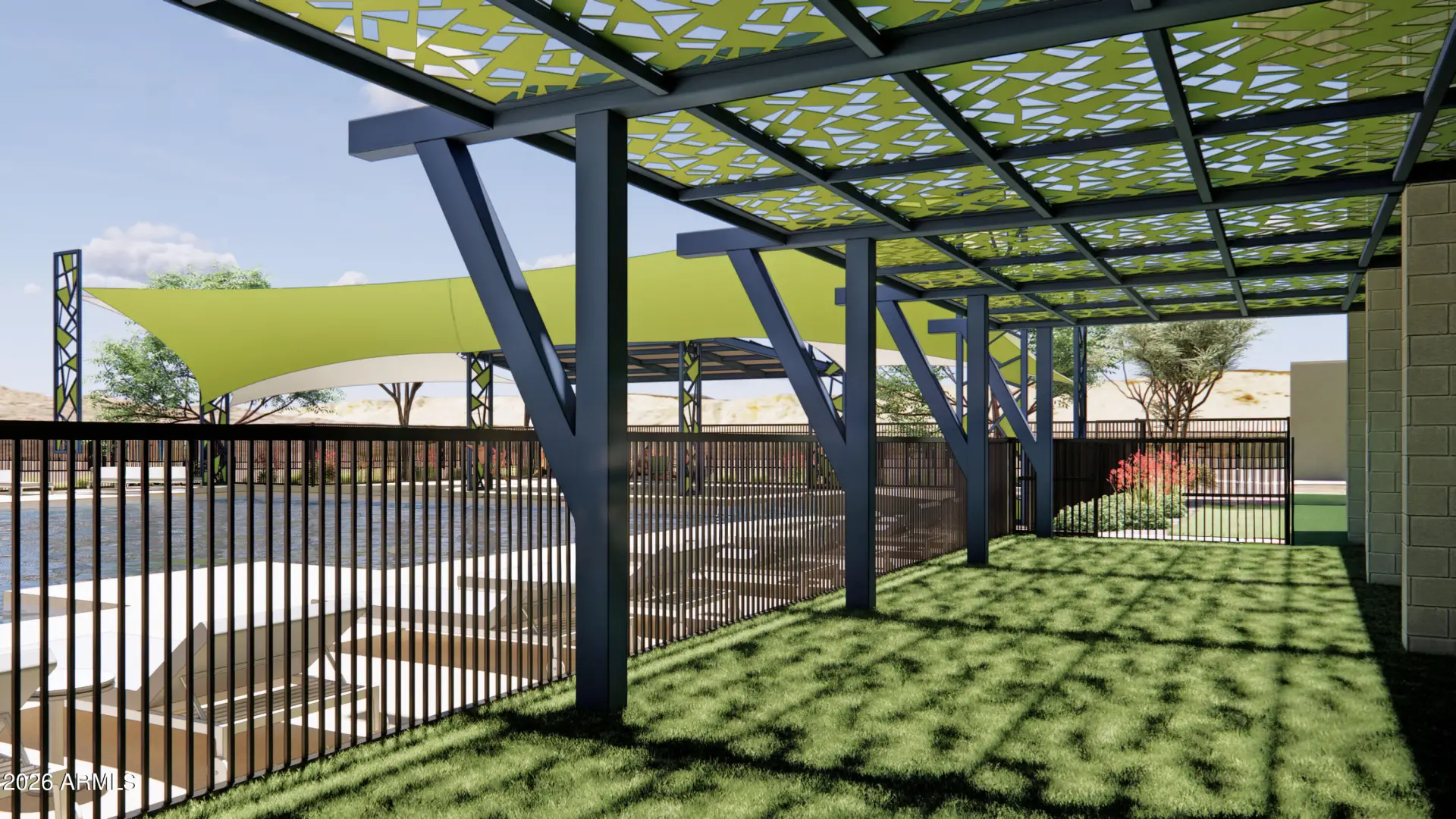 Step inside the Lavender floorplan, a 2,222 sq. ft. single-story home designed for comfortable everyday living. Two secondary bedrooms are located at the front of the home and share a full bath, while a private retreat on the opposite side offers an additional bedroom, bathroom, and flexible living space. The kitchen features the Harmony Collection with white cabinetry, quartz countertops, a white honeycomb tile backsplash, and black hardware. Wood-look tile flooring, 8-foot interior doors, and a 12-foot sliding glass door enhance the open feel. Move-in ready package includes refrigerator, washer, dryer, window blinds, and soft water loop. Enjoy Skyline amenities including pools, sports courts, walking paths, fitness center, and clubhouse.
