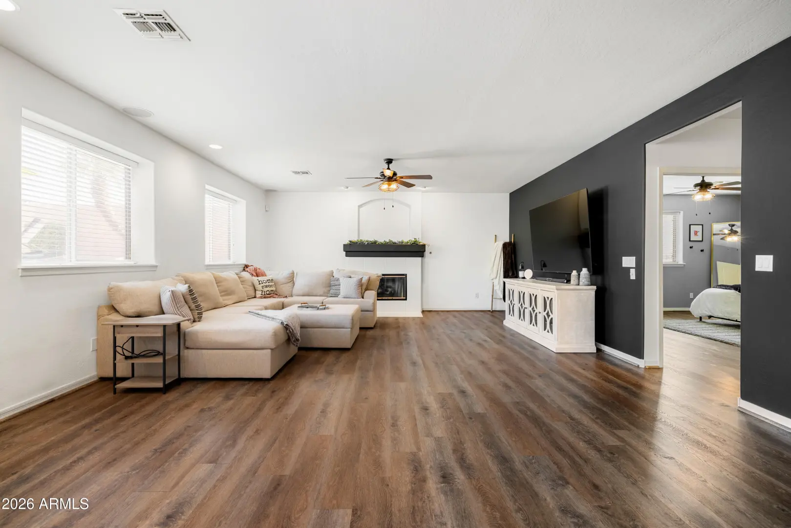 This beautifully designed corner-lot home offers a light-filled, open layout with a stunning backyard & space for everyone to spread out. Thoughtful updates include a newer roof (2016) & fully renovated bathrooms featuring tiled showers & granite countertops. The expansive kitchen flows seamlessly into the family room & is outfitted with 42'' cabinetry, granite counters, travertine backsplash, built-in microwave, wall oven, & separate cooktop—perfect for both everyday living & entertaining. The main level includes a full bedroom & bath, plus a generous 5th bedroom that easily doubles as a game room, home gym, or flex space. Upstairs, you'll find the primary suite along with two spacious secondary bedrooms. The backyard is truly an entertainer's retreat, complete with a PebbleTec pool
