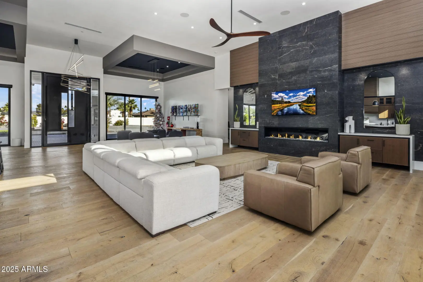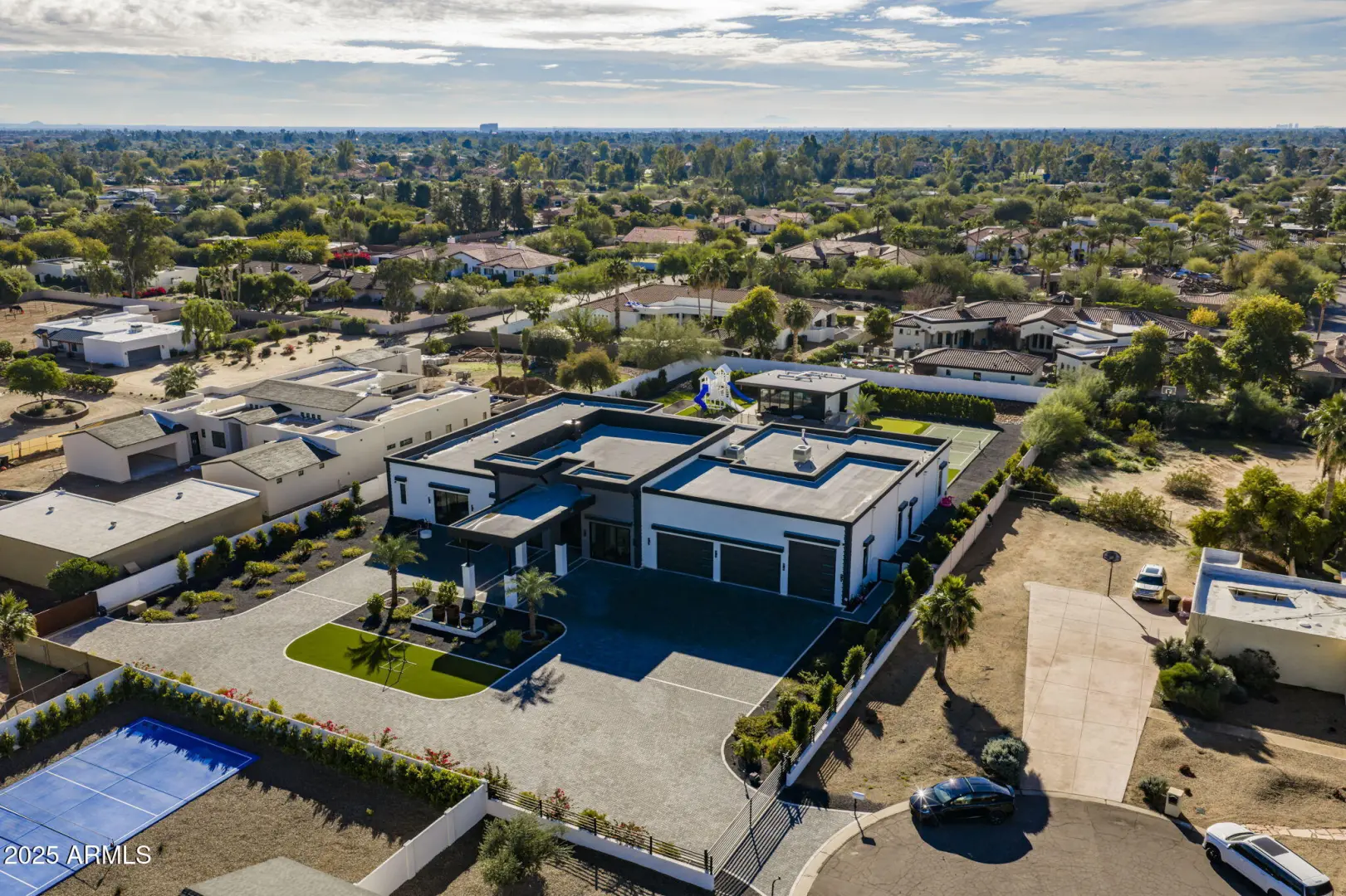 Welcome to your dream oasis, a luxurious contemporary gated estate on a private 1 1/4 acre lot. This newly constructed masterpiece offers six bedrooms, seven full bathrooms, and two half baths, delivering exceptional space and comfort. Soaring ceilings and an open floor plan showcase refined architectural details and abundant natural light. The chef's kitchen features top-tier appliances, custom cabinetry, and expansive countertops, complemented by a full wet bar and a large back butler's kitchen ideal for entertaining and catering. A state-of-the-art home theatre enhances the indoor experience. Outdoors, enjoy a resort-style backyard with a luxury pool, pool house, fire pit, bocce ball court, pickleball court, and putting green. A rare 50-foot RV garage.