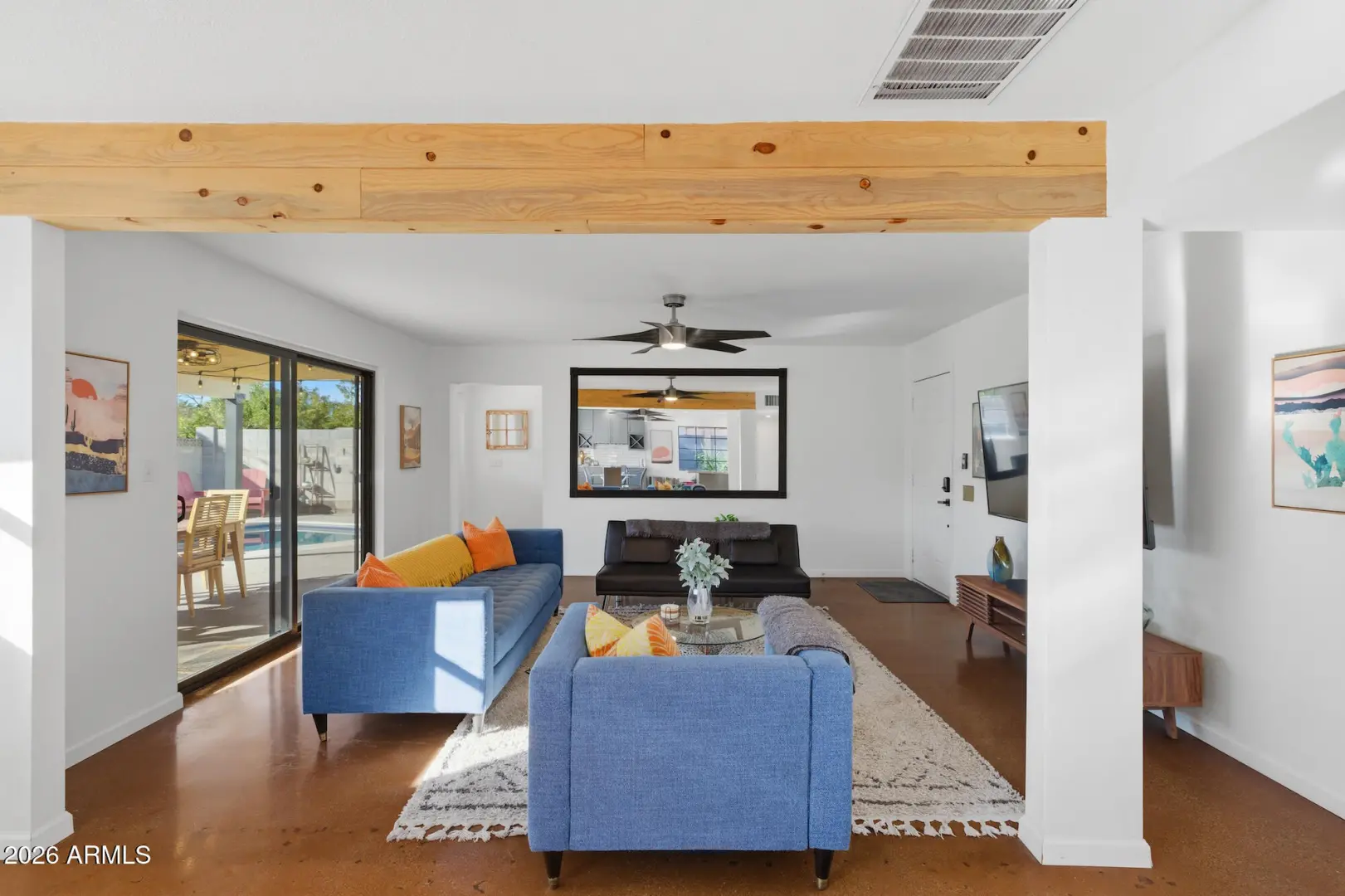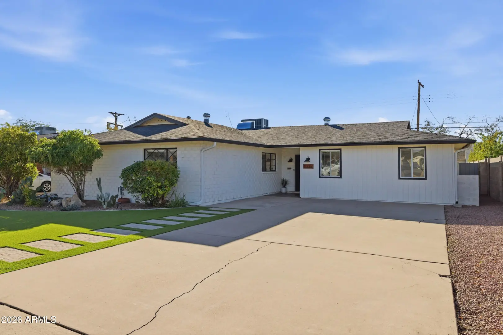 Tucked away in a quiet Scottsdale neighborhood but minutes from the buzz of Old Town, this fully remodeled 5 bed, 3 bath home is the kind of property you want to see hit the market! A clean, modern outside with turf landscaping and fresh exterior paint... and inside, a renovated interior designed for both comfort and style. The open-concept great room flows seamlessly into the kitchen and dining area — fully updated in 2023 with polished concrete floors, brand-new cabinetry, granite countertops, modern sinks, stylish backsplash, and stainless appliances. The flexible layout gives you multiple options for work, guests, or play. The split floor plan is ideal for privacy, while oversized windows let in natural light throughout.