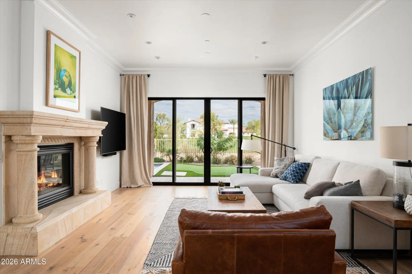 Stunning home in the premier gated golf community of Scottsdale Links Estates. Set against hole # 12 of Silverado Golf Club, this complete remodel blends modern design with refined comfort. Pride of ownership throughout with attention to detail and custom finishes including: warm white oak flooring that creates a cohesive and inviting foundation, bright white gourmet kitchen anchors the space with crisp finishes, generous cabinetry, and a seamless connection to the surrounding entertaining areas. A dedicated 800 bottle capacity wine room adds a sophisticated layer, ideal for both display and enjoyment. The primary suite is located on the main level opening to the covered patio overlooking the golf course. The primary bathroom is light and bright and has been remodeled with custom vanity